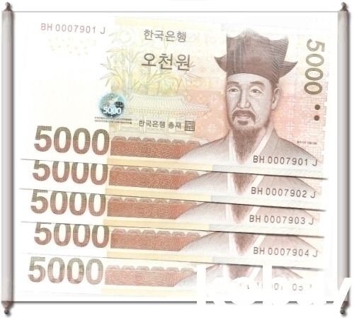 한국은행 마5,000원권 빠른번호 5매 미사용입니다.