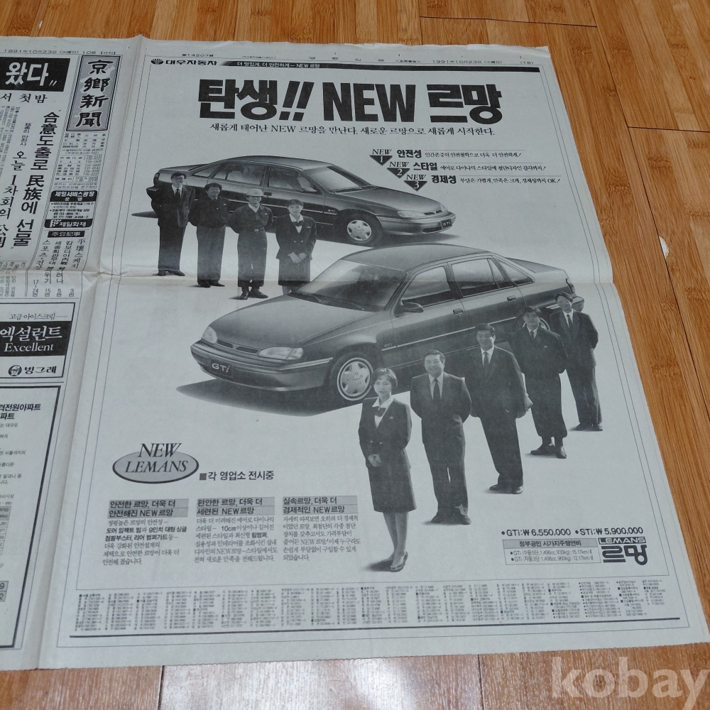 대우 르망 승용차 광고 경향신문 91년10월23일 올려드립니다