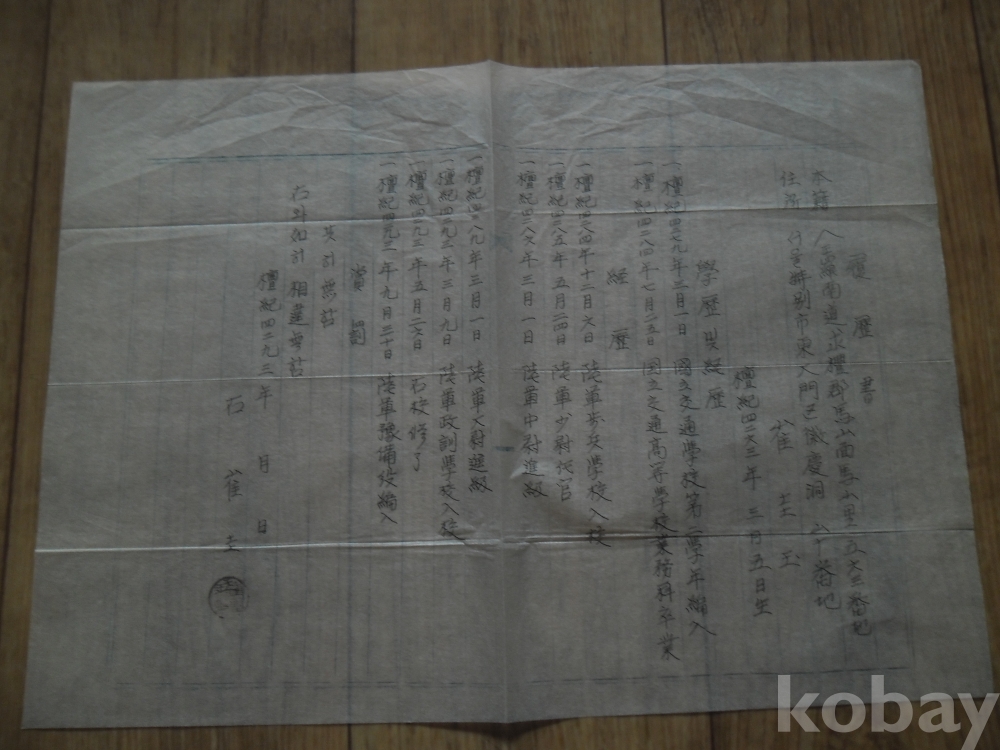 1960년 작성 필사 이력서