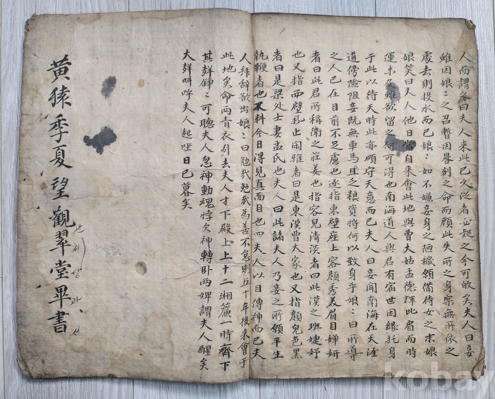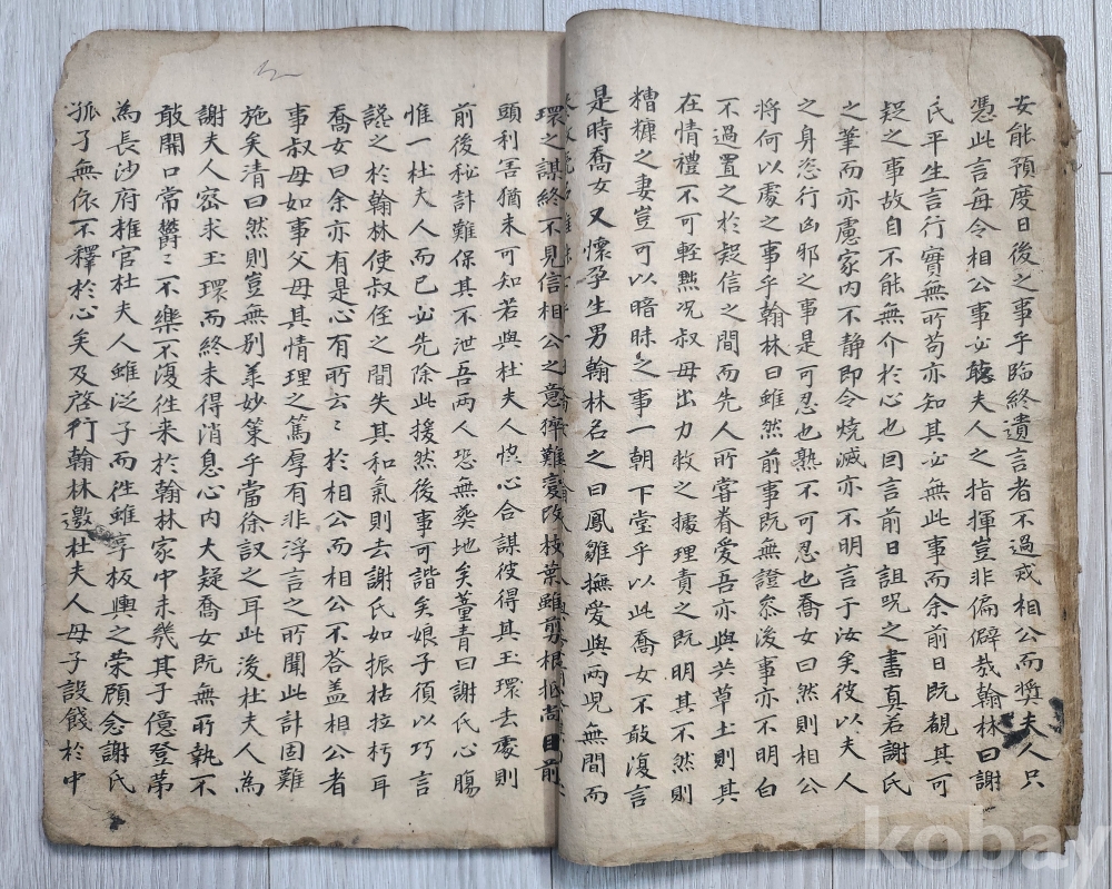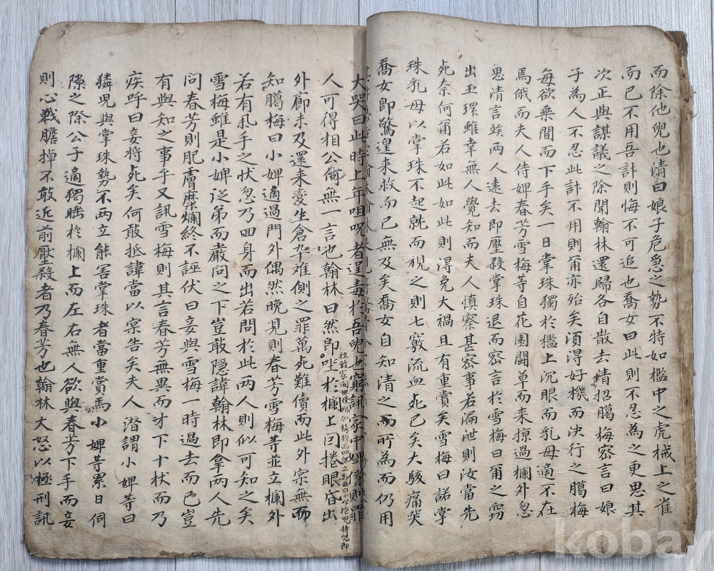 조선시대 한국고대소설 김만중저 사씨남정기. 입니다 김만중(암행어사.문신.공조판서.역임) 1637-1692년 출생.경남 남해군. 마지막장에보면 황원(무신년1728-1788년) 관휘당에서필사. 라고 쓰여 있습니다 김만중원작을 후손 김훈택(1670-1717) 한문으로지음. 사진 참조바랍니다
