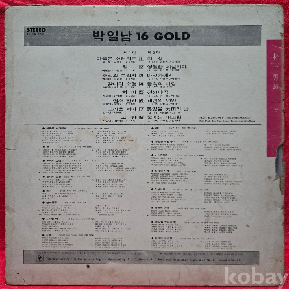 | 자켓상태 | VG : 주름, 접힘, 모서리 찢김 다수 | 음반상태 | EX : 재생에 영향 없는 가벼운 기스 존재 | 발매정보 | 초반 | 가사지여부 | 무 |