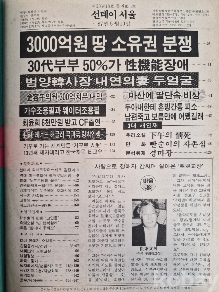[희귀 근대사 자료] [선데이 서울] / 1987.5.10일 / 표지 탤런트 이기선