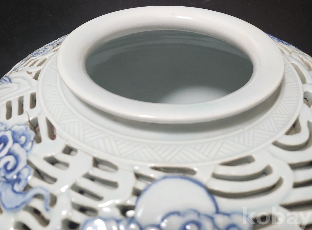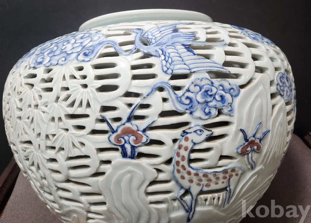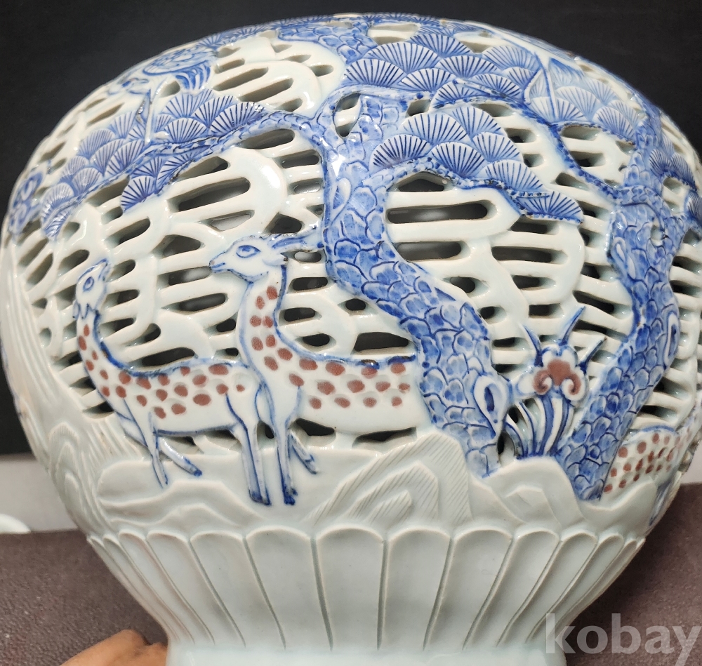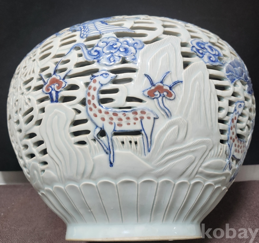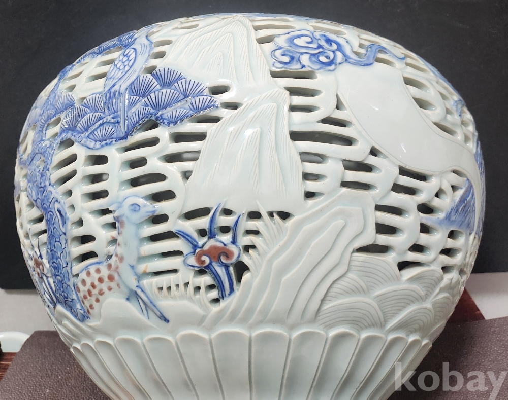 <1세대 도예가> 호산[呼山] 안동오[安東五] 백자청화투각장생문호 白磁靑華透刻長生紋壺