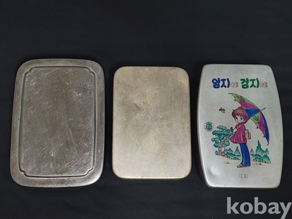 빈티지 세월 감이 느껴지는 옛날 양철 도시락 3개 일괄입니다.