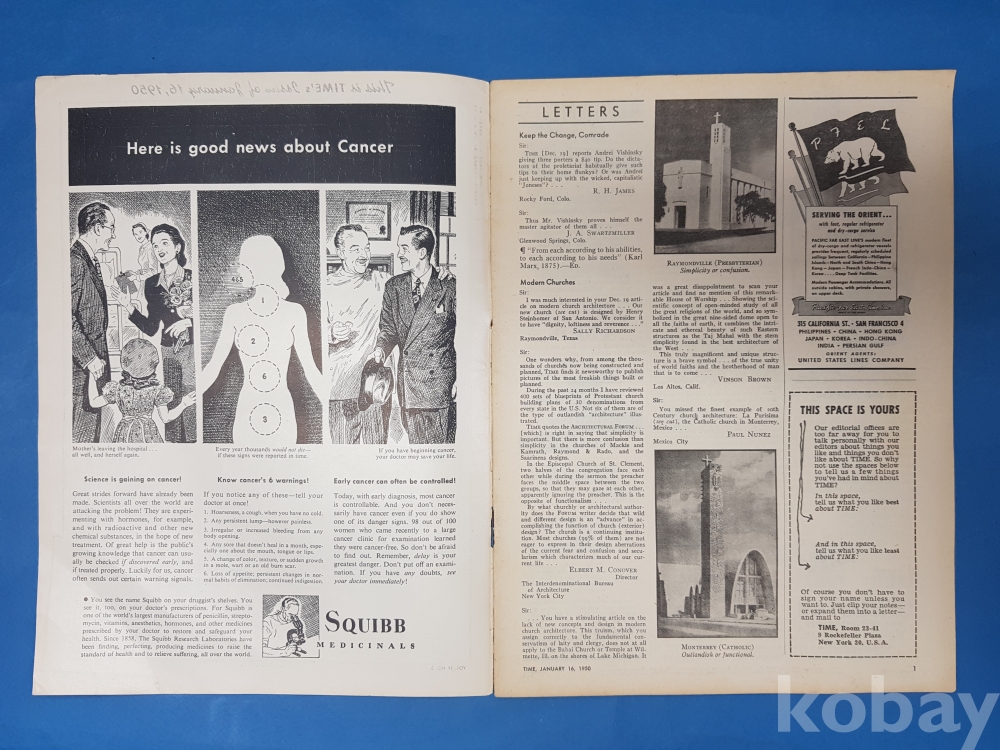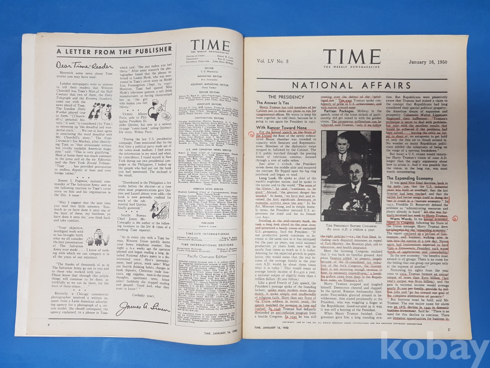**** TIME 'THE WEEKLY NEWSMAGAZINE'/1950.1.16/40페이지