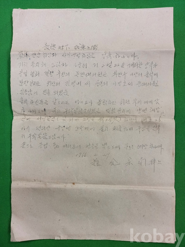 이문서는 1966년 당시 양곡가공업협회 결성을 추진하던 과정에서 작성된 통지문으로, 양곡업계 권익을 위해 협회를 구성하고, 그 과정에서 선출된 임원진을 알리며 협조를 구하는 내용을 담고 있습니다. 당시 지역 사회에서 양곡업 종사자들이 힘을 모아 조직을 만들던 생생한 역사가 담긴 자료입니다.