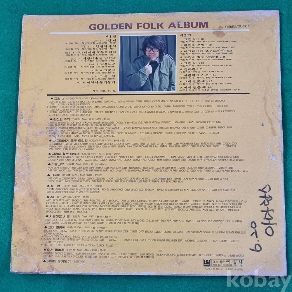 | 자켓상태 | VG : 주름, 접힘, 모서리 찢김 다수 | 음반상태 | VG : 생활 기스 다수, 가벼운 노이즈 존재 | 발매정보 | 알수없음 | 가사지여부 | 유 |
