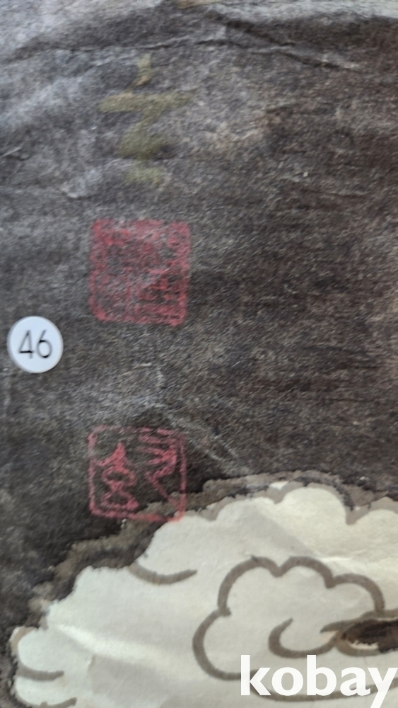 작품 상단에는 금분으로 쓰여진 화제가 퇴색하여 선명도가 떨어집니다,