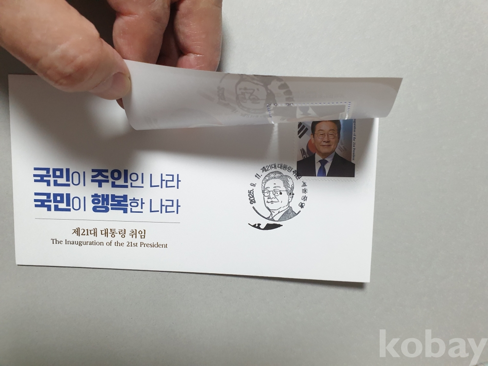 실물 사진입니다( 취임기념우표첩에 부착돤 봉투에 시트 우표 소인) / 소인 상태 확인 바랍니다