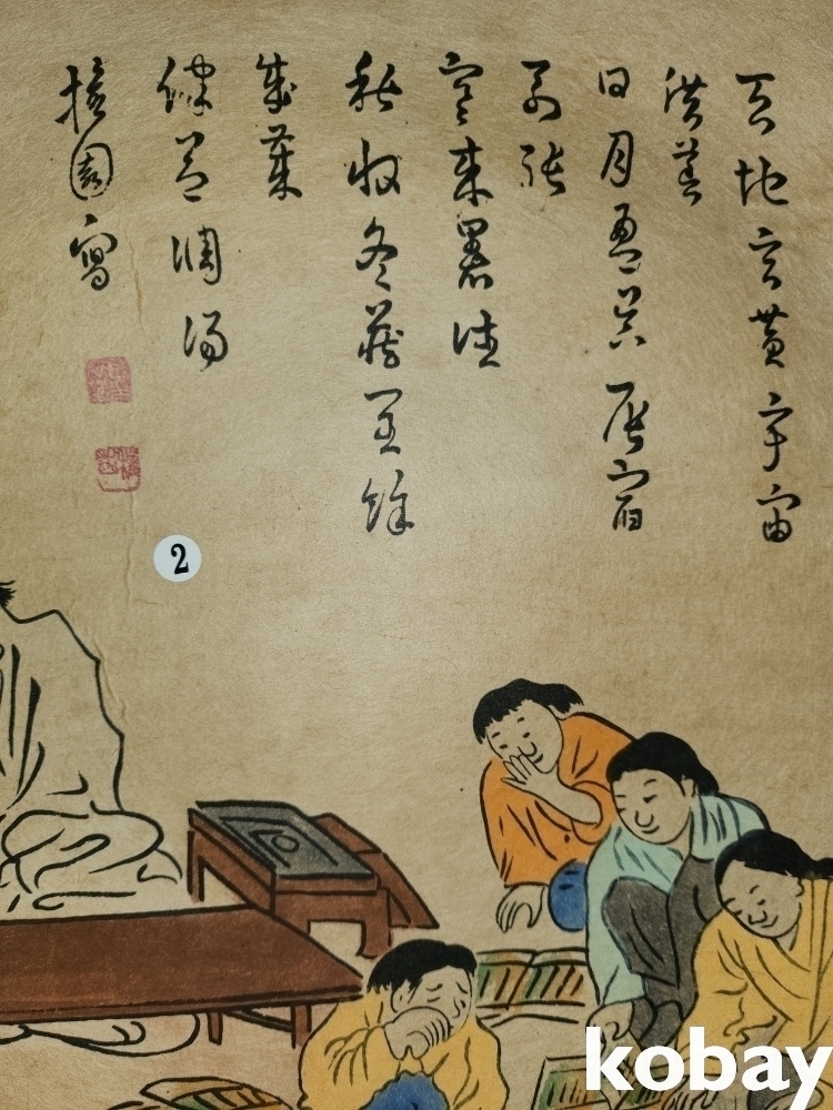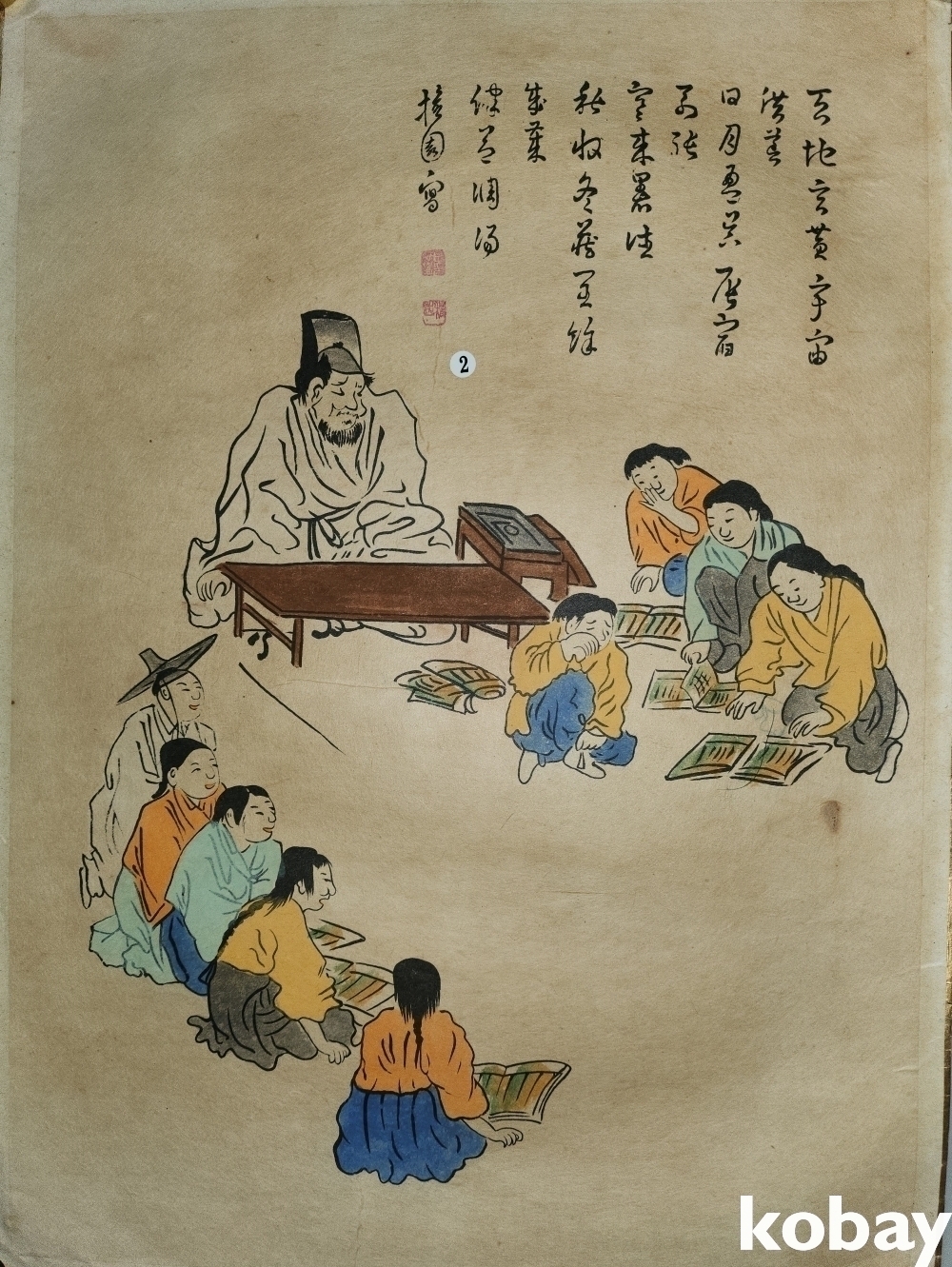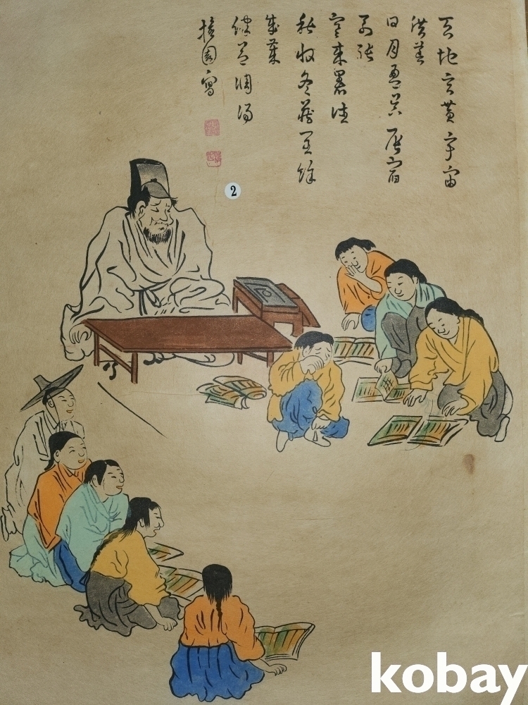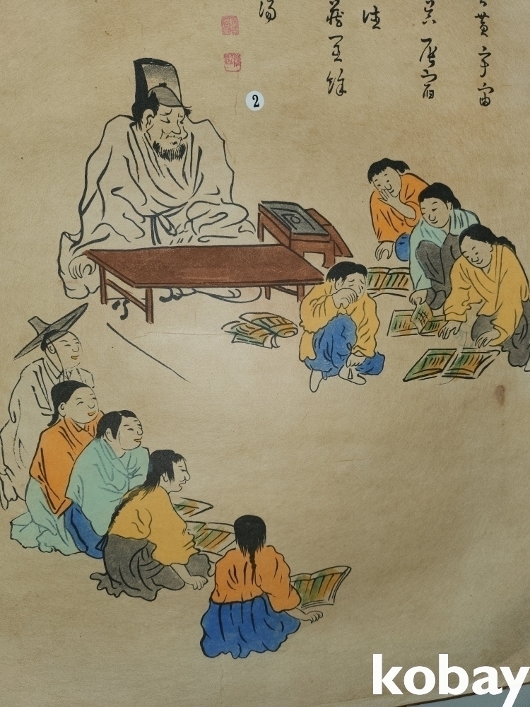 종이에 채색된 서당 그림입니다,