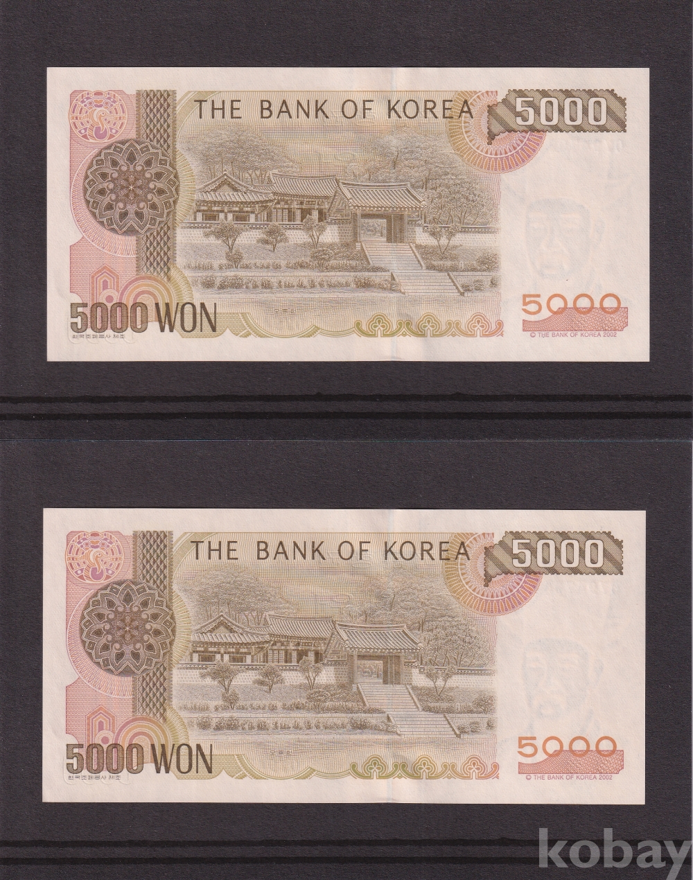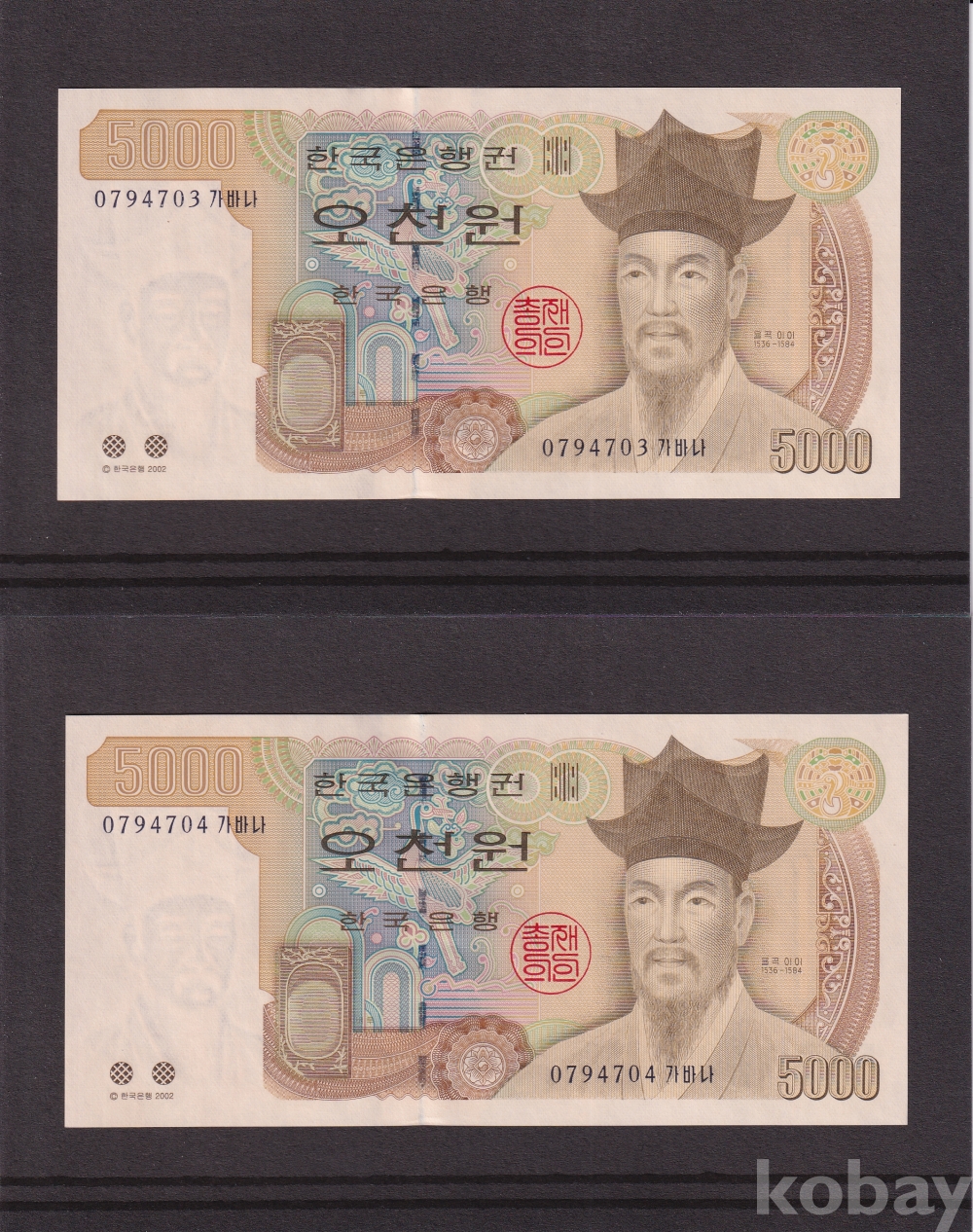 - 한국은행 2002년 4차 오천원 07포인트 미사용 지폐 - 2장 일괄