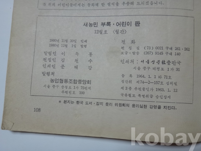 새농민 부록, 어린이 판 - , 김유신 장군, 레슬링선수 같은 고릴라 등 (1980년)