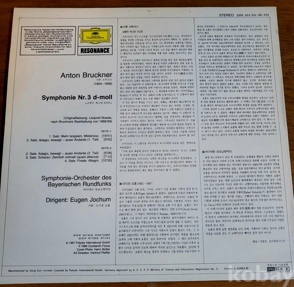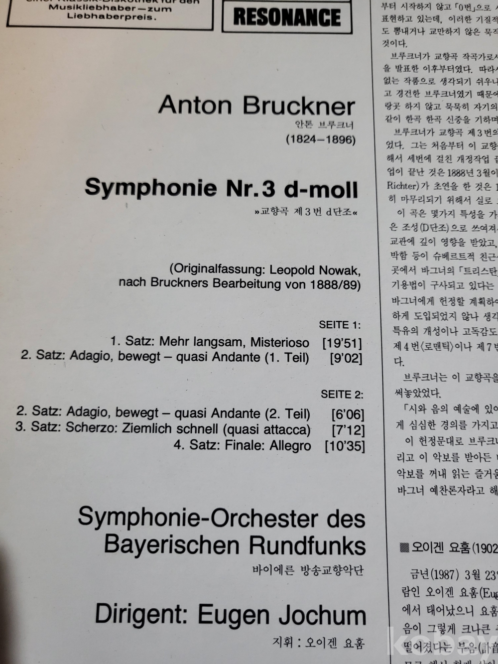 LP(☆☆단순개봉미사용☆☆)((☆☆요훔의 그룩크너 심포니 nr3☆☆성음 고음질☆☆))(소장추천)