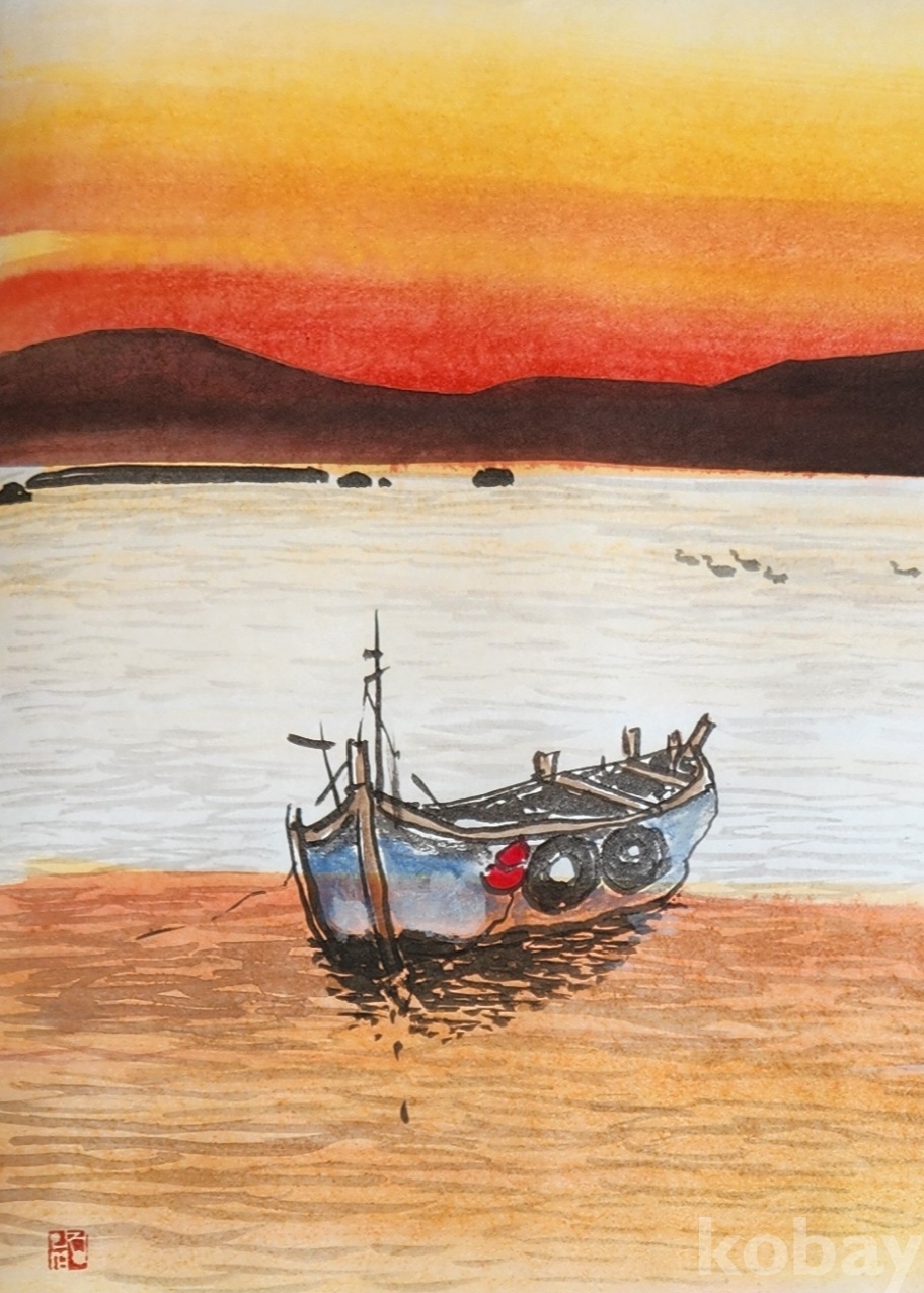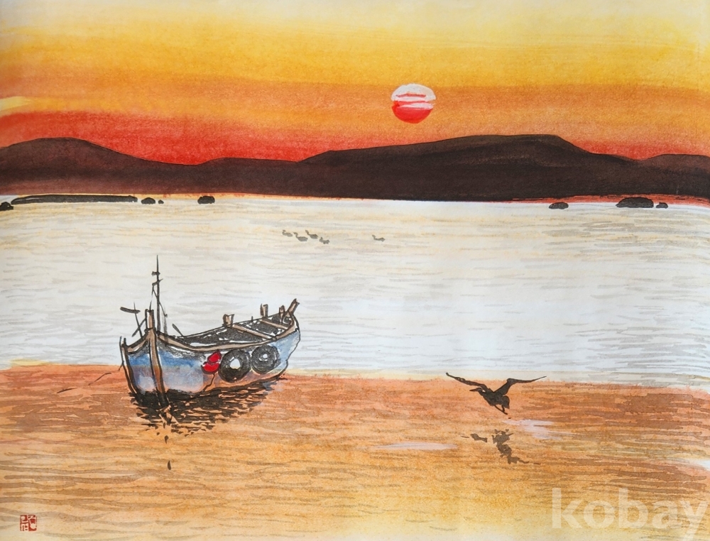 유명 한국화가 매당 정인섭 <일출>6절6호