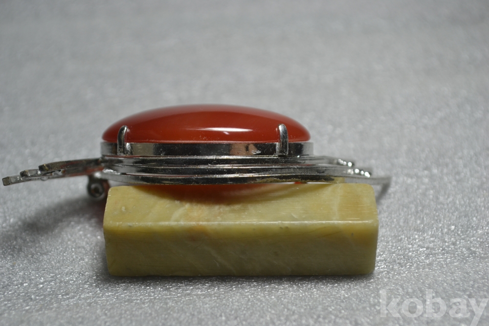 진한 붉은색상이 매우 아름다운 최고급 진품 적마노(赤瑪瑙) 보석알이 장식되어진 이쁘고 섬세한 디자인으로 섬세하게 만들어진 고급 진품 적마노브로치 작품 입니다. (사진참조)