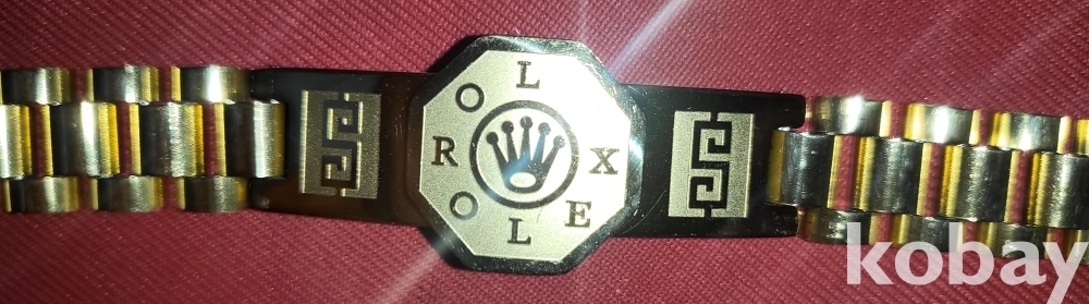 로렉스(ROLEX OLE) 마크가 새겨진 황색 고급형 남,녀 공용 미사용 팔지입니다,