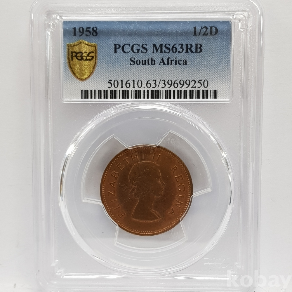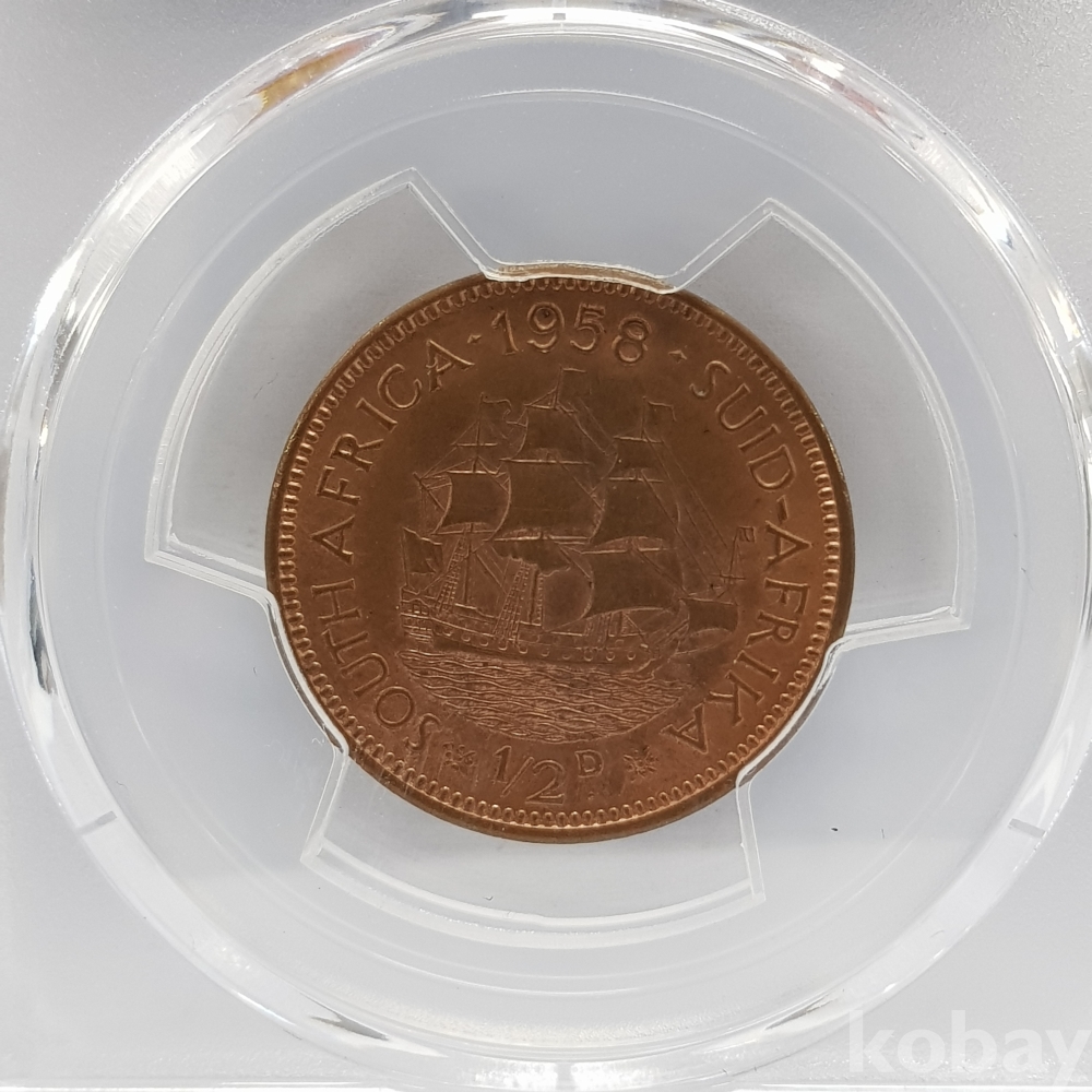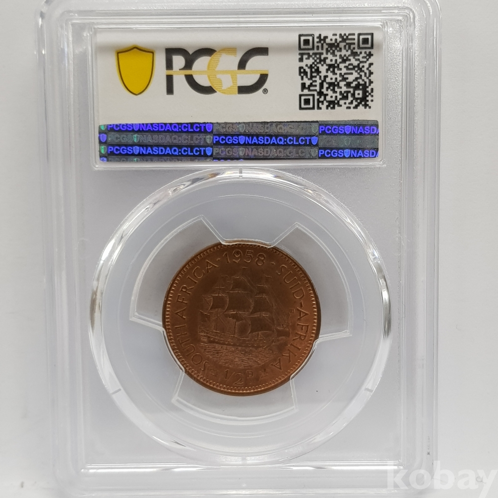 - 1958년 남아프리카 연방 1/2페니 PCGS MS 63 그레이딩 주화