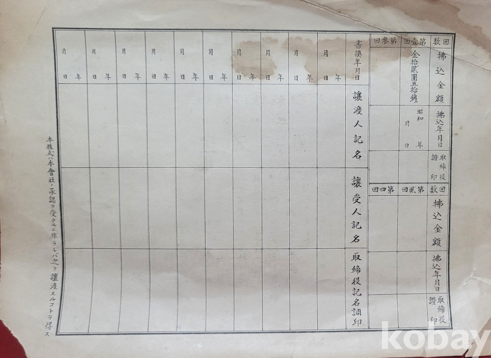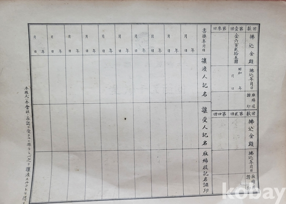 본 주식증서는 조선내 일본계 또는 합작회사에서 발행된 것으로 사료됩니다,