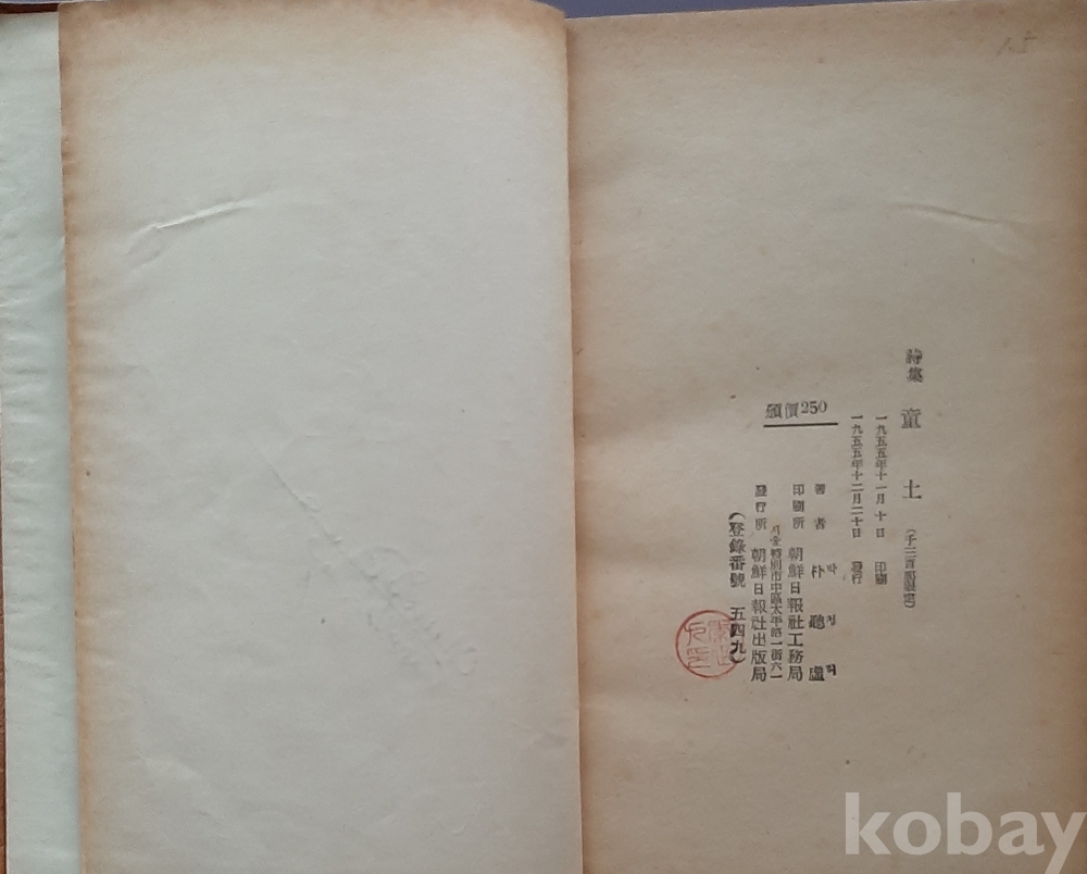 동토-박청허 제1시집 1955년초판 서울신문사 발행 1300부한정발행본