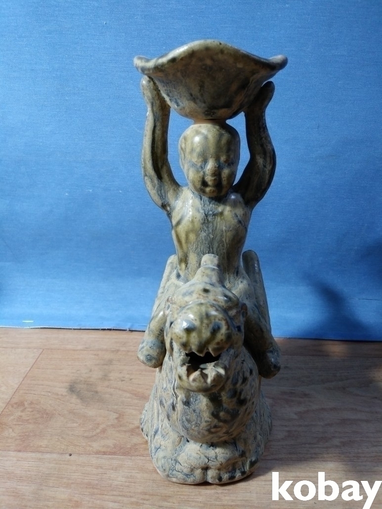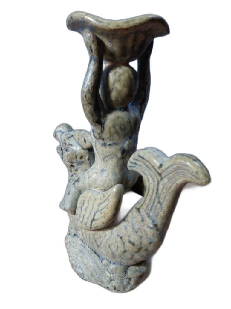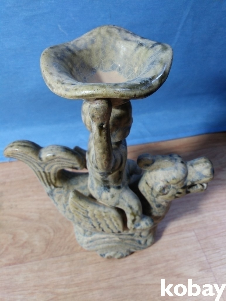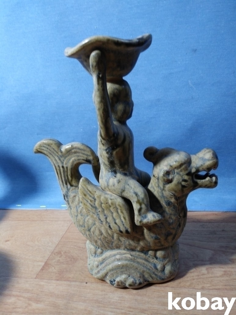 용 물고기에 인물 형상의 촛대 도자기 입니다.
