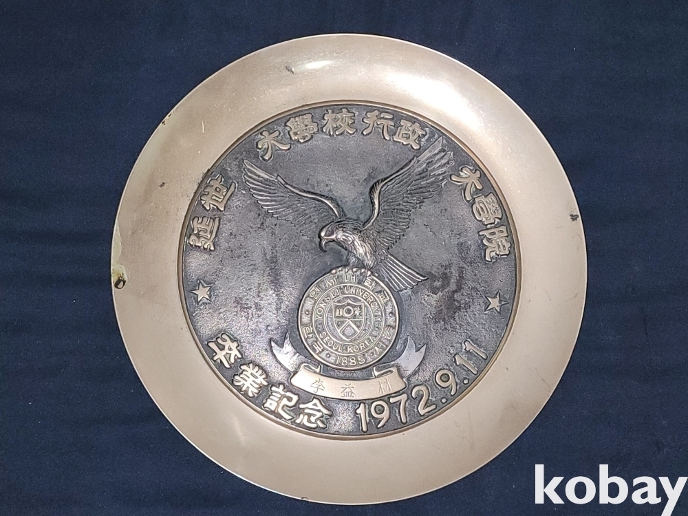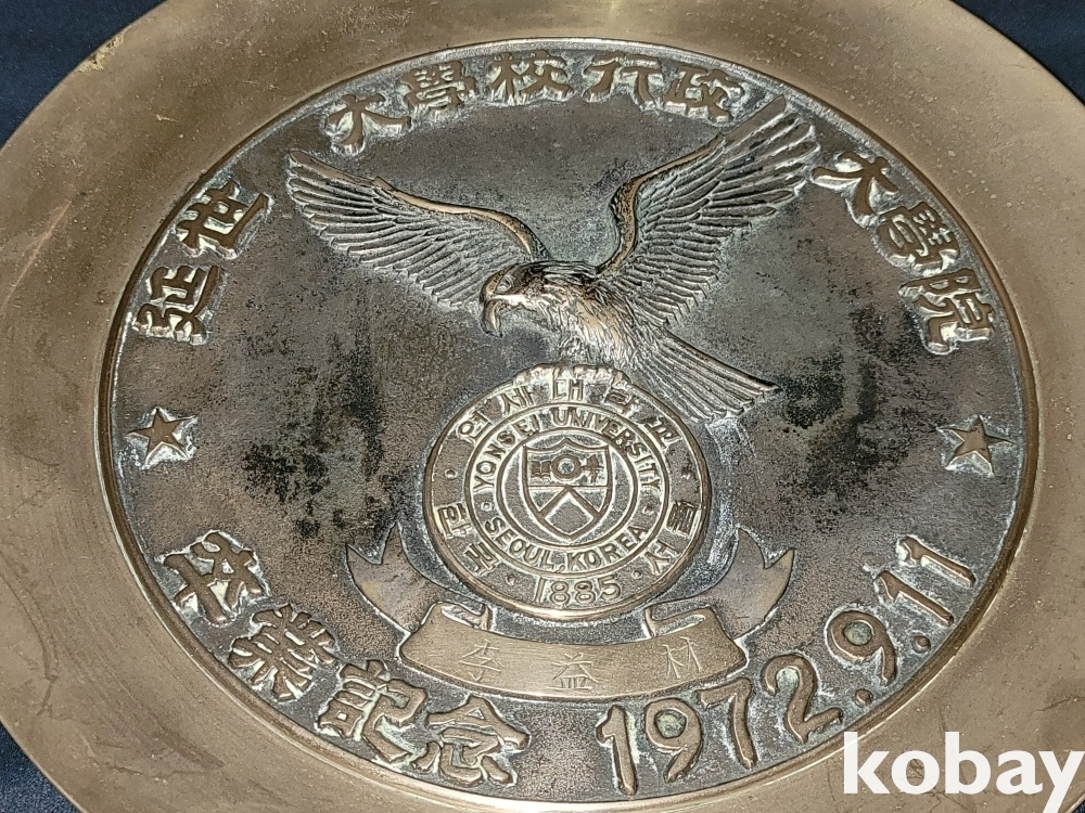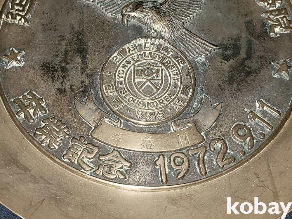 빈티지 세월 감이 느껴지는 1972년 묵직한 연세대학교 관련 동패입니다.