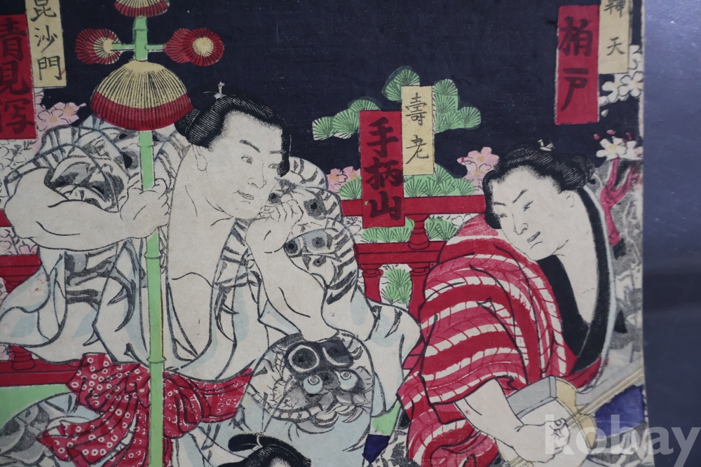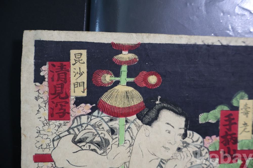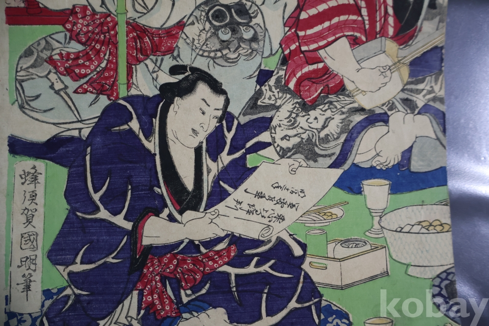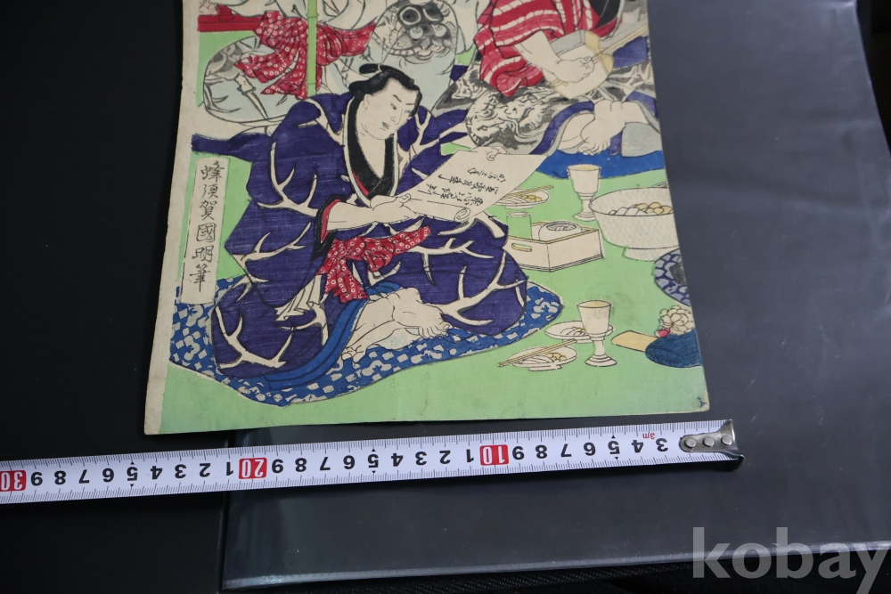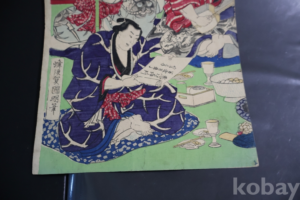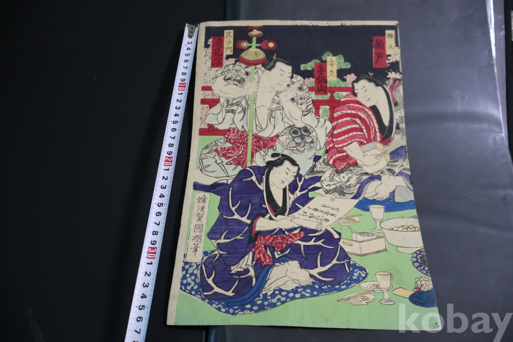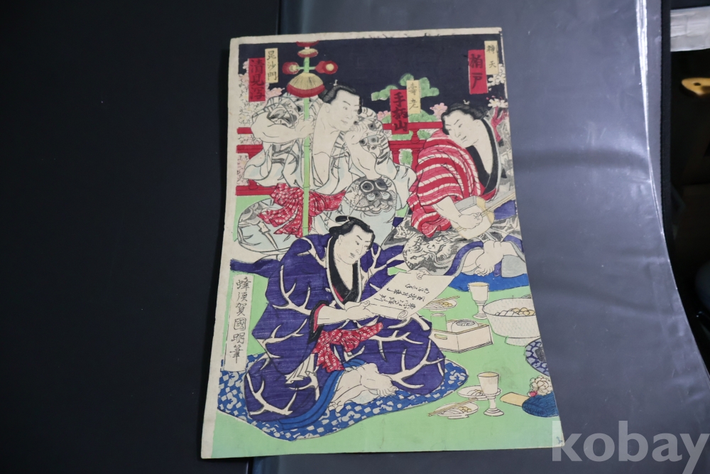 2 장 혹은 3 장 연결 목판화 중에 한개 이며 일본 고미술 임니다 사진 참조 하세요 구니아키 화가