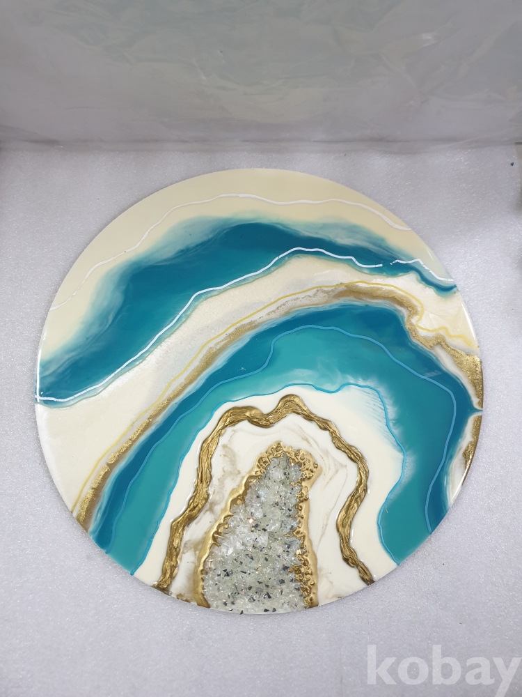 {천원경매}3-1947 에폭식 레진아트 인테리어 파랑원 (40*40, 묶음배송불가)