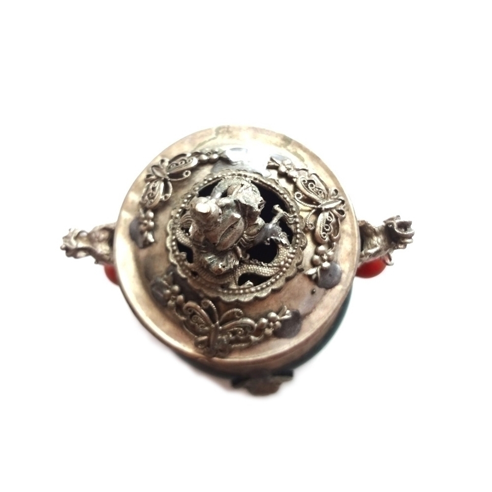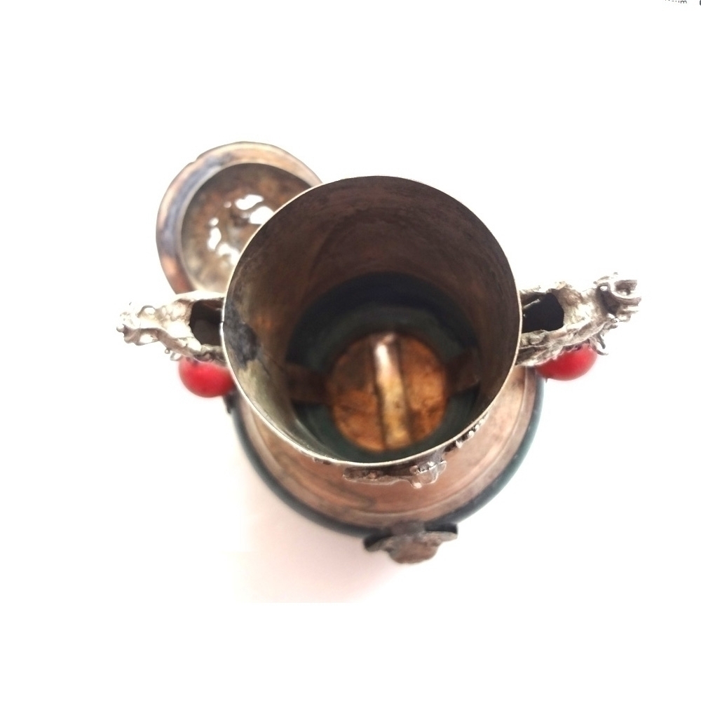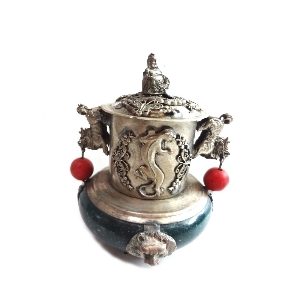 몸통은 백동으로 만들어졌으며 옥이 들어간 장식용 앤틱 향로입니다.