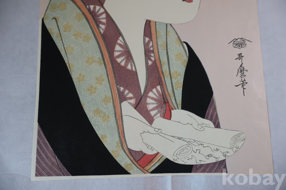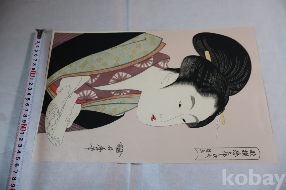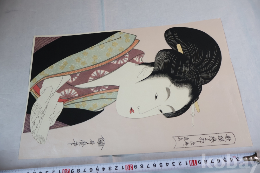 고급 우타마로 목판화 임니다 소화기에 복각된 당대의 명화 이며 아타치 판본 임니다 은마이카 처리 된 명품 명화 임니다