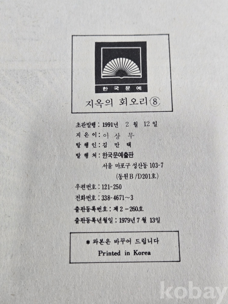 80-90년대 추억의 만화방 = 청소년 만화 = 이상무 글.그림 = 지옥의 회오리 8권 완질