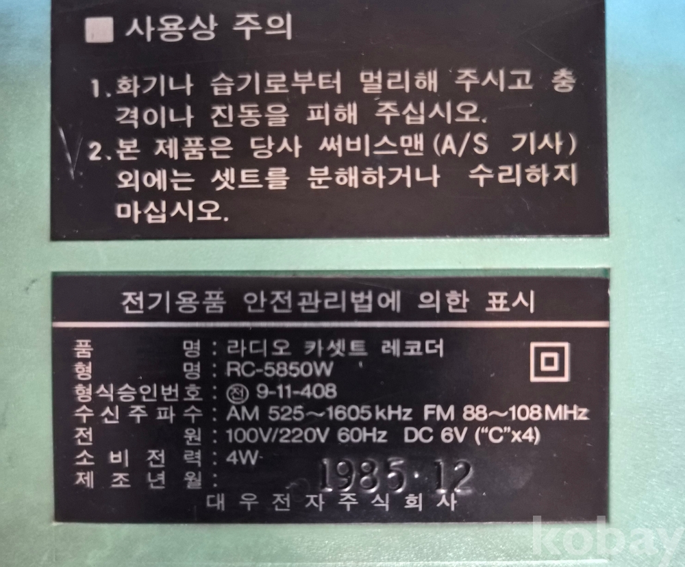 [희귀 근대사 자료] DAEWOO RC-5850M型 FM/AM 2BAND 라디오 카세트 레코더