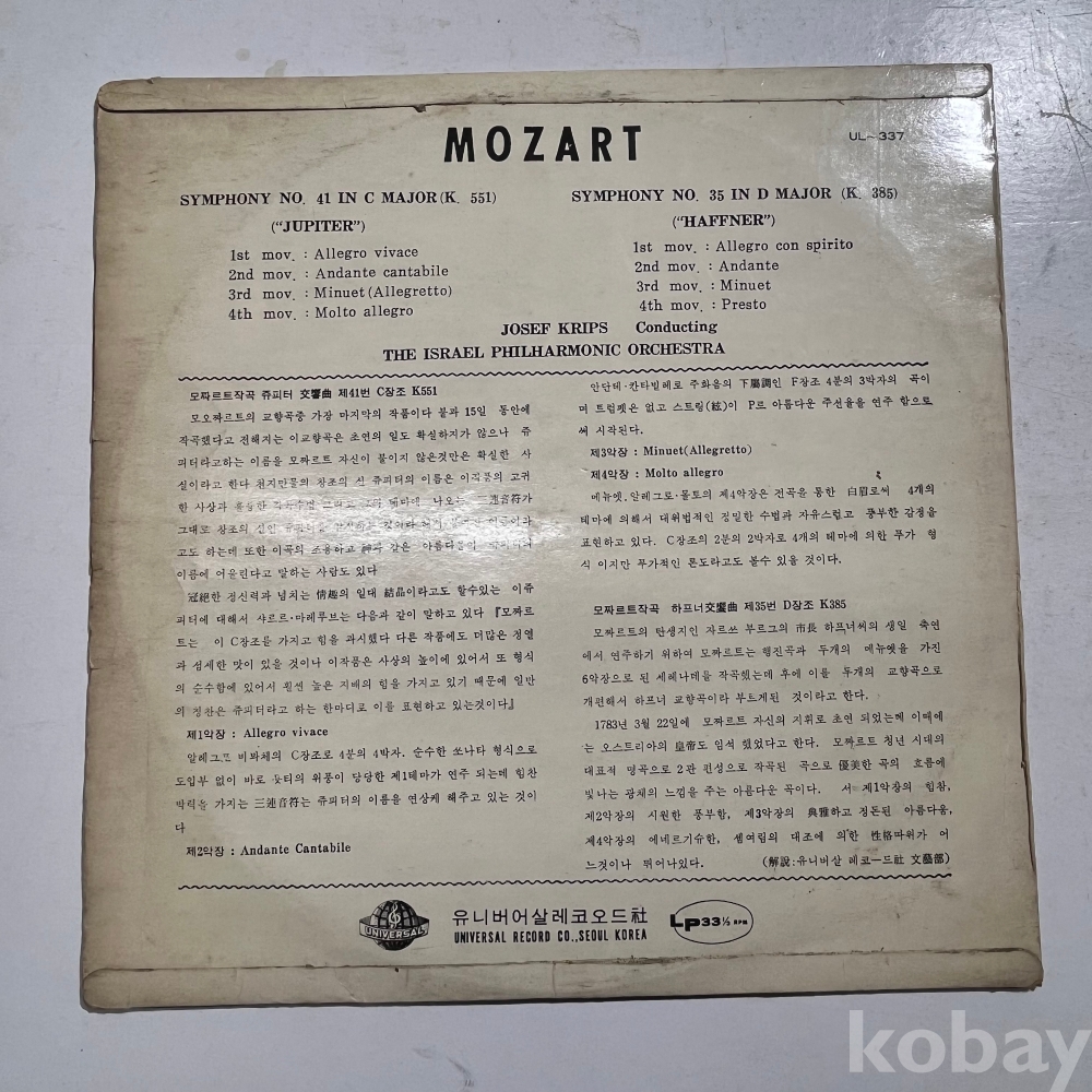 JUPITER SYMPHONY . HAFFNER SYMPHONY LP판입니다.