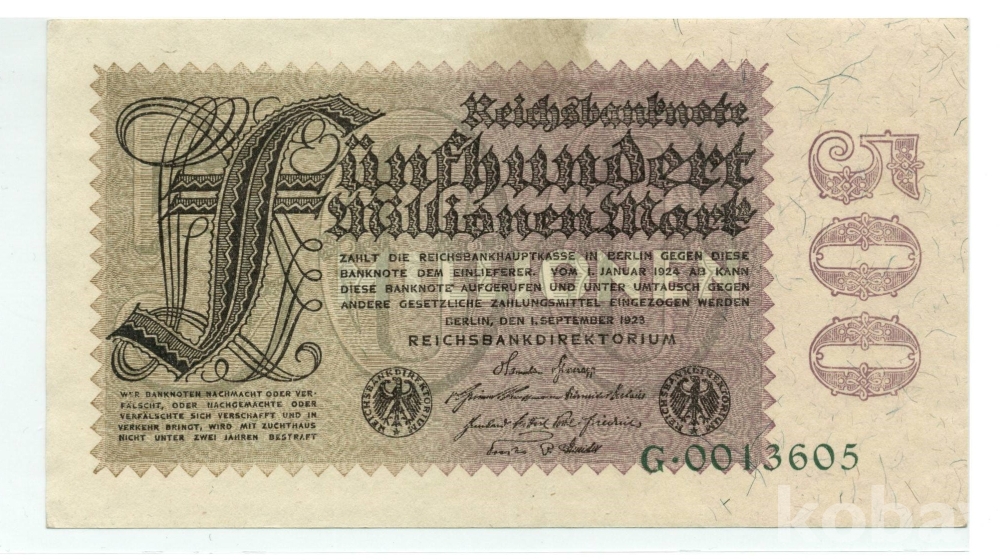 이름: 1923년 독일 하이퍼인플레이션 5억 마르크
