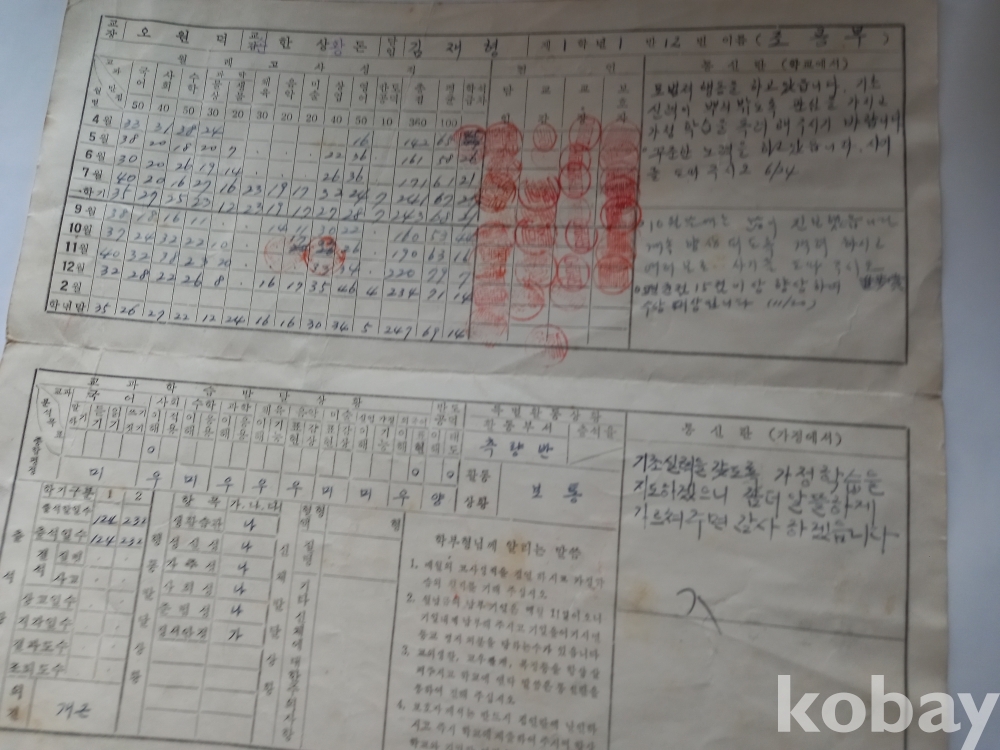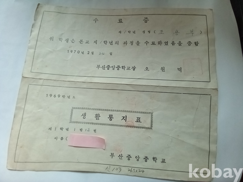 신 109) 부산중앙중학교 생활통지표
