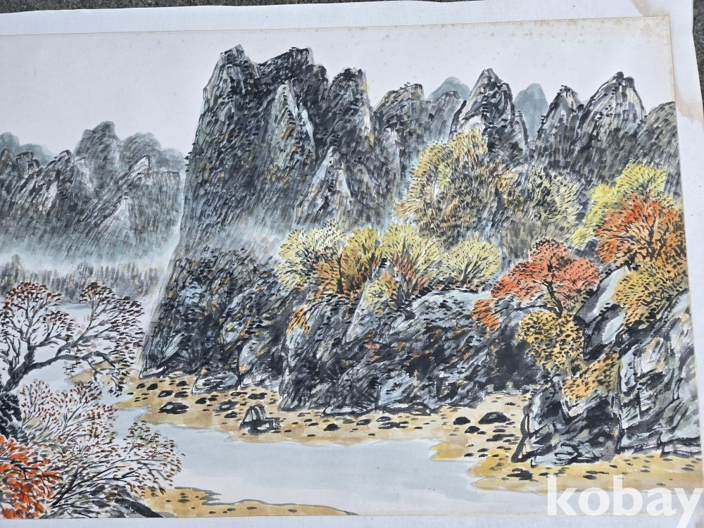 가을 산수 풍경을 아름답게 표현한 대형 그림 입니다.