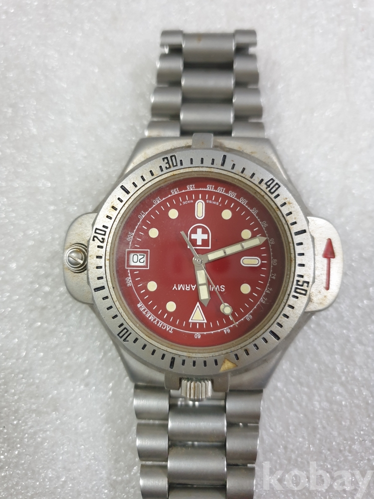 {천원경매}3-2207 스위스 아이시계 자주색(작동확인안됨, 정품확인불가)