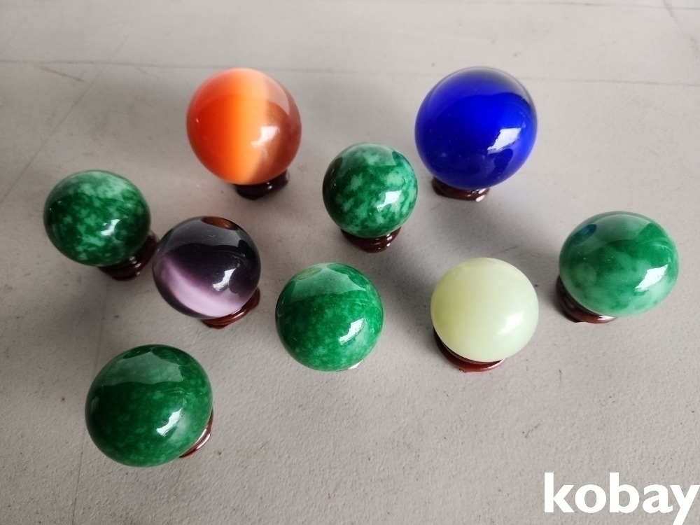 색감이 아름다운 수정구, 호안석, 비취석, 묘안석 9개 입니다.