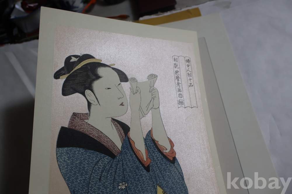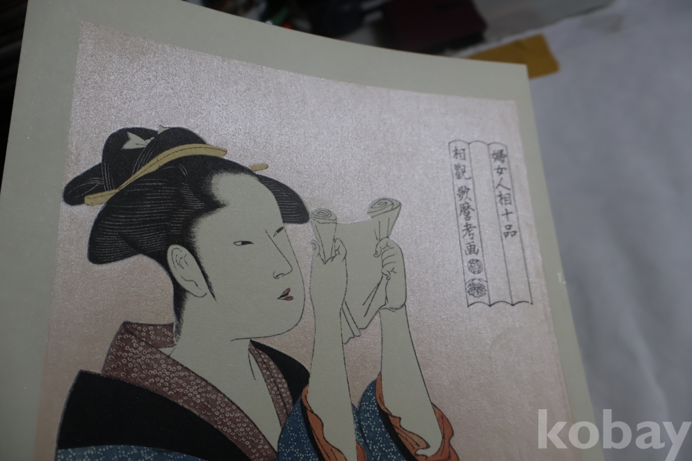게이샤 임니다 섬세 정교 아름다운 소화기의 명화 임니다 고급 목판화 일본 목판화의 명물 임니다 은 마이카 처리 된 명작 임니다