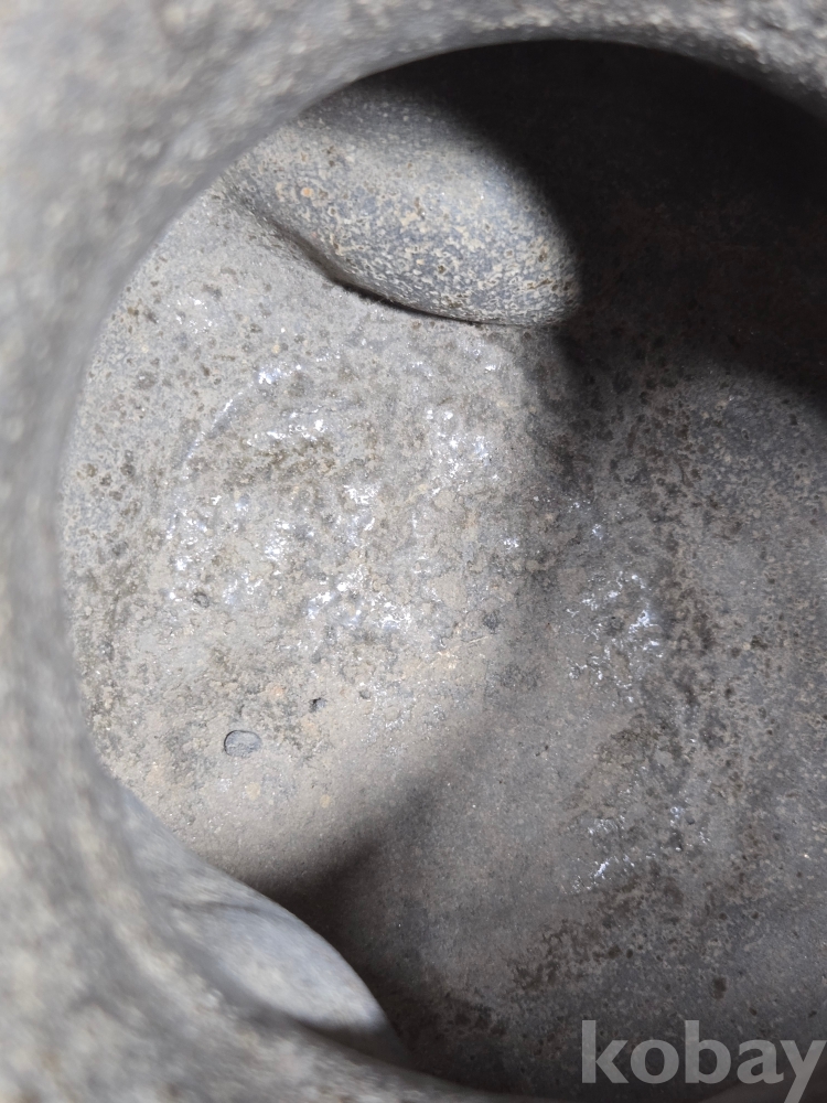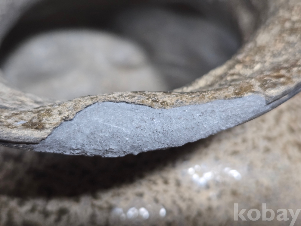 수리부로 보이는 부분은 일반적인 수리부가 보여줄수 없는 구조를 이루고 있으며, 토기 본체와같은 강질의 성형을 보여주고 있습니다.