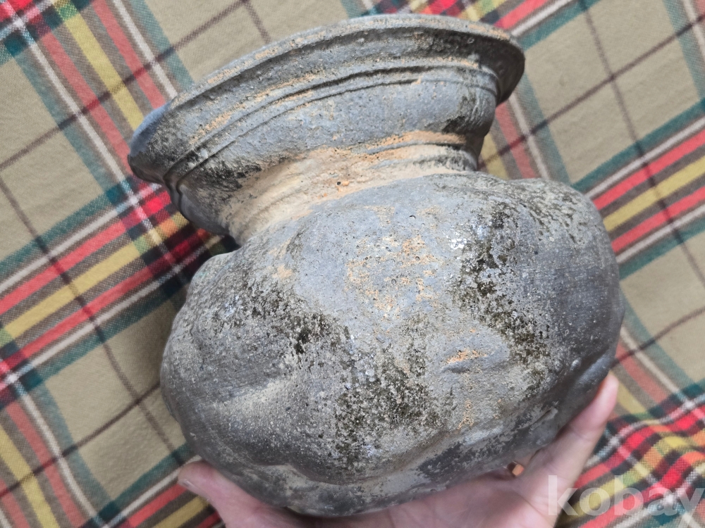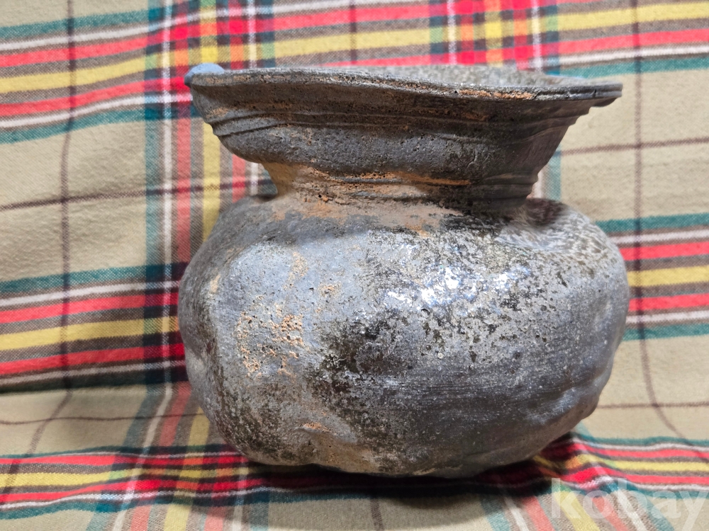 태토의 수비과정이 부족했던듯 전체적으로 마치 풍선과도 같은 공기 주머니가 형성되며 마치 한점의 추상미술품과도 같은 독특하고 아름다운 형상을 보여주는 삼국시대 토기 항아리, 단경호 입니다.