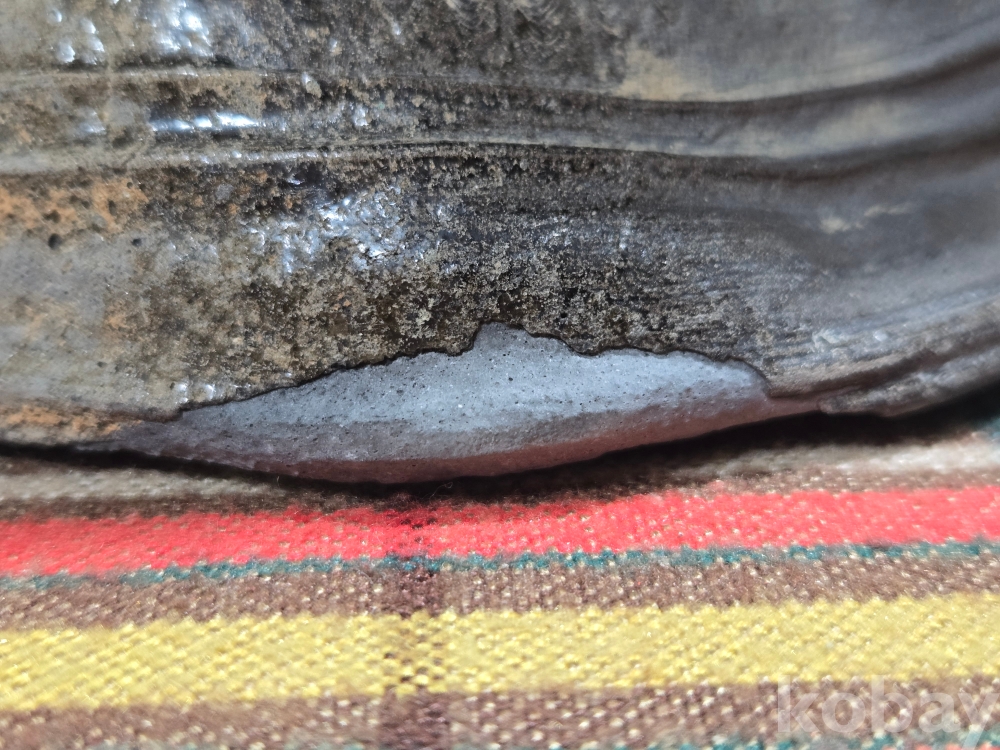 주둥이 두곳의 수리로 보이는 부분은 수리된곳이 아니라 고온소성과정에 자연유약이 형성된 부분의 피막이 내부 태토로부터 피부벗겨지듯 벗겨져나간 부분이라 판단하고 있으나 수리부로 간주하시고 입찰해주시길~