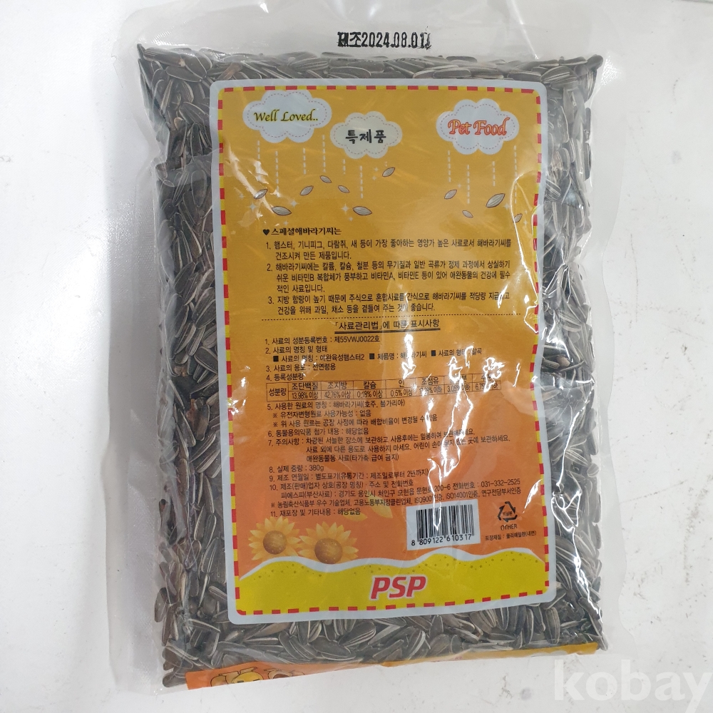 [*천원행복*] J - 3 - 1224 햄스터 먹이 해바라기씨 380g (미개봉)