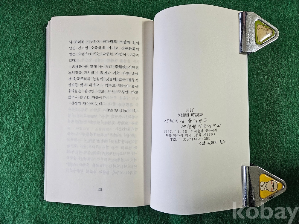 1] 품명 : 月汀 이종손 의 세번째 시조집 " 세월속에 묻어놓고 세월불러 물어보고 "