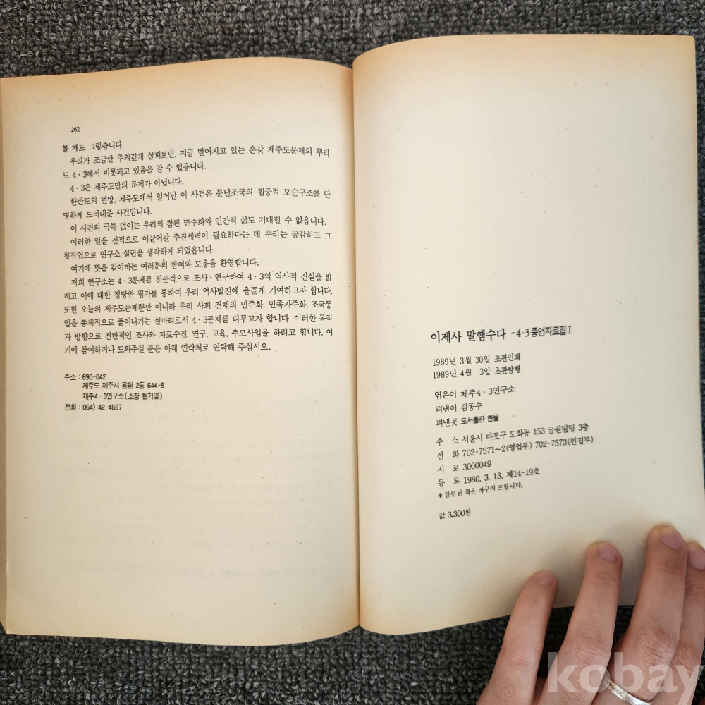 [한국현대사, 4.3사건, 국가폭력] 제주 4.3연구소, <이제사 말햄수다 : 4.3 증언 자료집 1>, 한울, 1989, p. 262, 중급(사진참조)