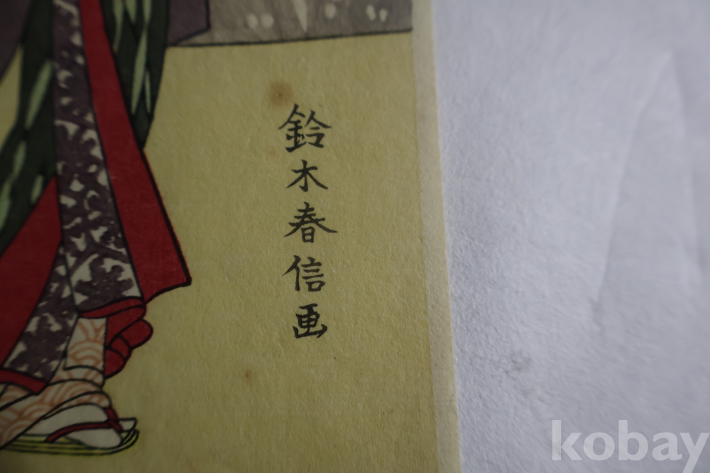 목판화 임니다 우키오에 창시자 스즈키 하루노부의 소화 초기 목판화 감수자의 낙관이 보이는 소화 초기의 목판화 임니다 세월의 반점이 보임니다