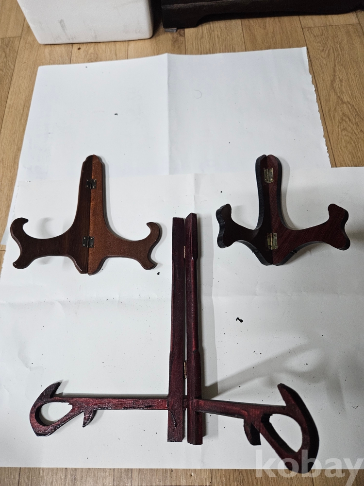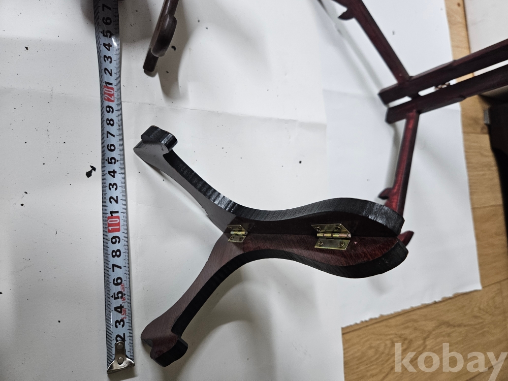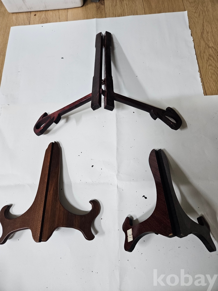 용도: 이 스탠드는 접시, 액자, 도자기 판, 작은 서화(書畫) 또는 장식적인 골동품 등을 세워서 안정적으로 전시하기 위한 디스플레이 거치대입니다.
