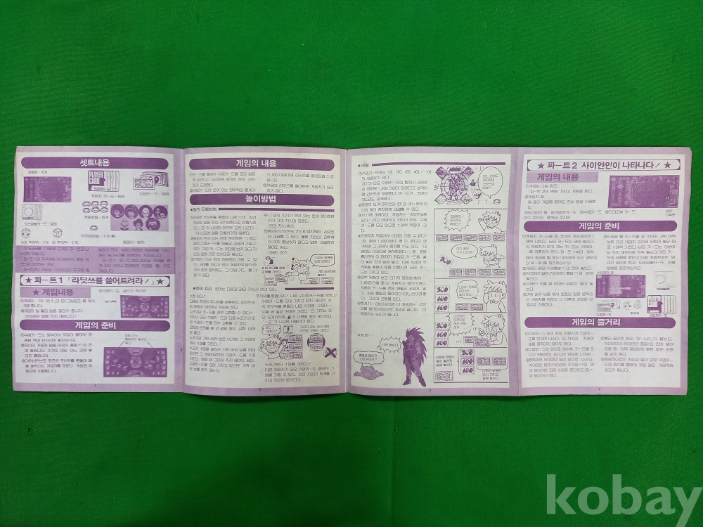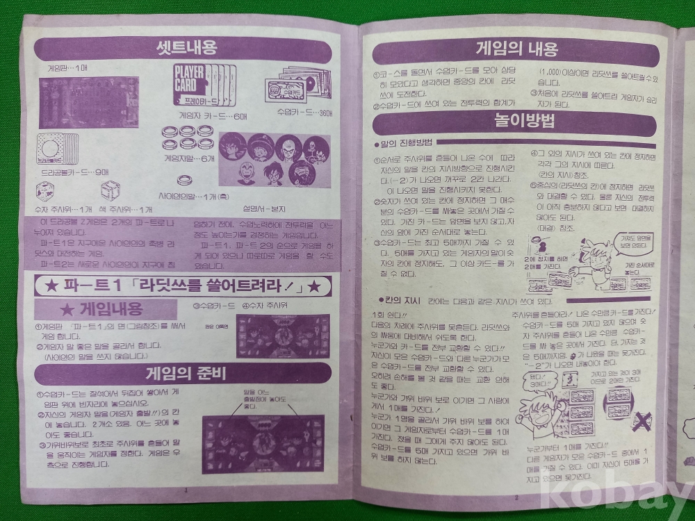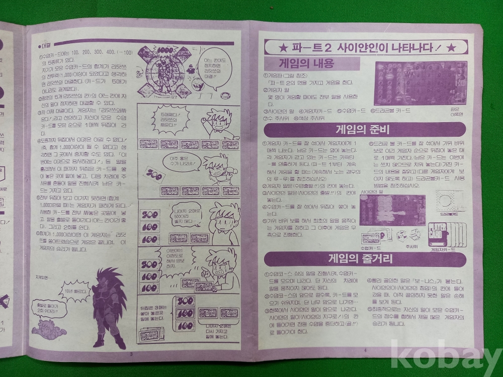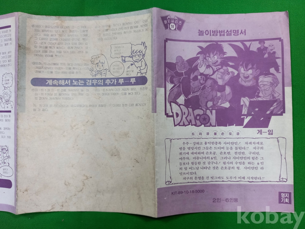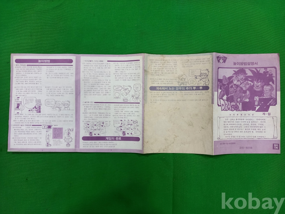 1990년대 초반 국내에서 유통되었던 드래곤볼 Z 보드게임의 놀이방법 설명서입니다. 당시에는 이러한 형태의 '졸리게임'이나 '명지시리즈' 같은 미니 보드게임들이 문구점에서 인기를 끌었습니다.
