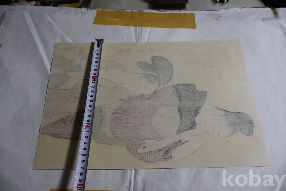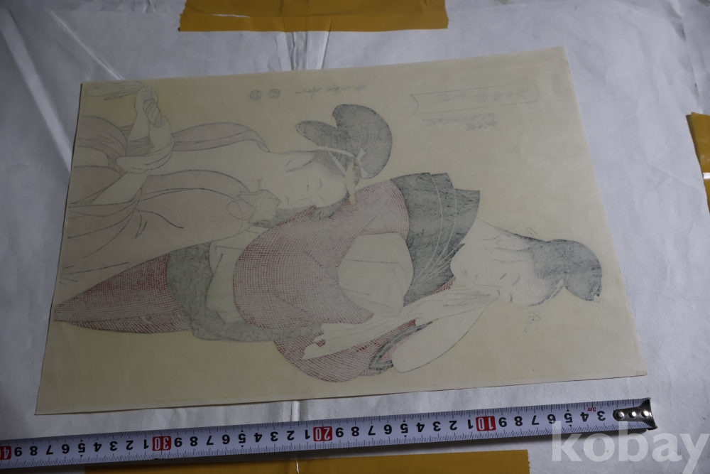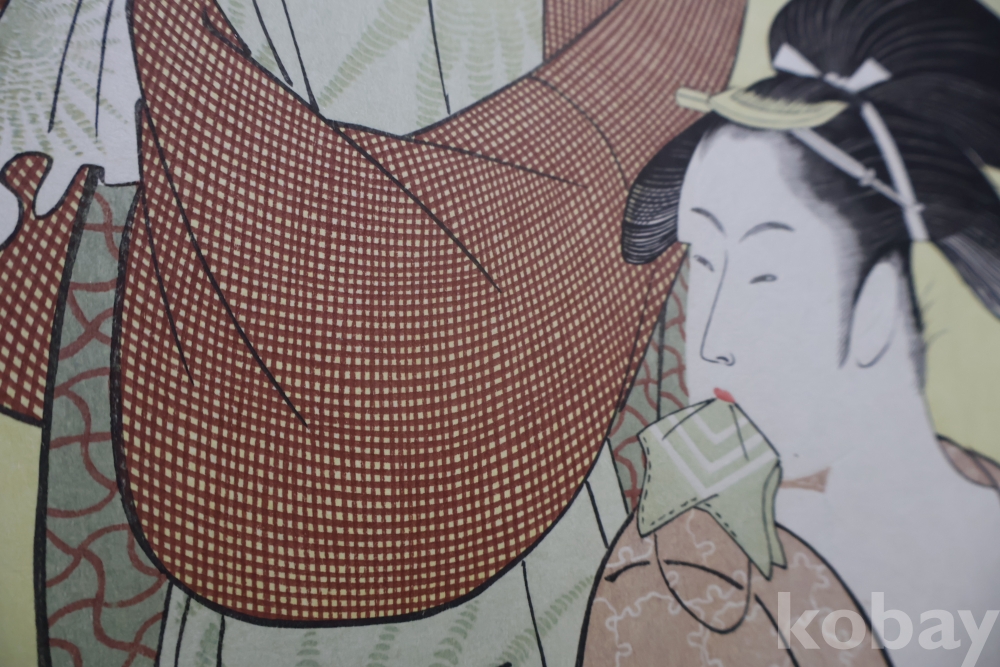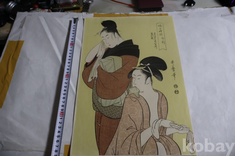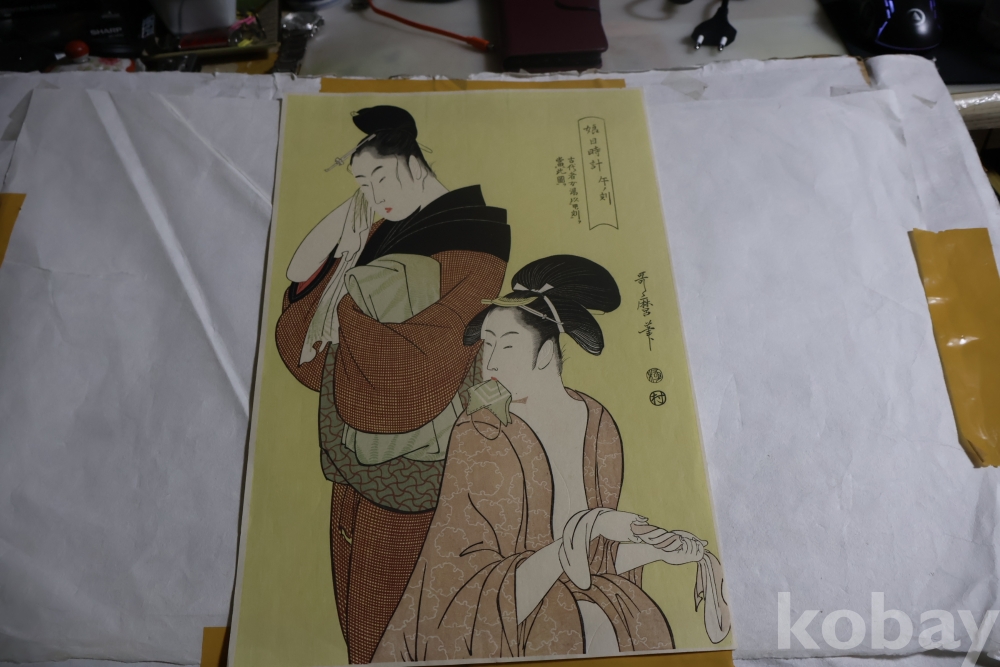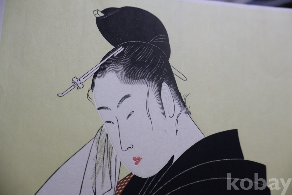 우타마로의 소화중기의 목판화 임니다 노란 배경을 가진 무척 귀한 목판화 임니다 섬세 정교 한 명품 임니다 싸구러 일반 프린트 아님니다 옛날 전통 방식으로 만든 목판화 임니 다