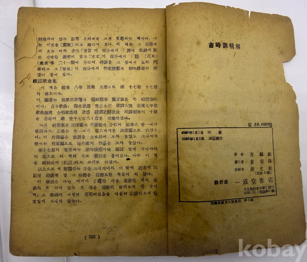 출 판 사 | 일성당서점 | 상 태 | 앞표지 하단부 탈락. 뒤표지 탈락 본문 낙장은 없음 | |||