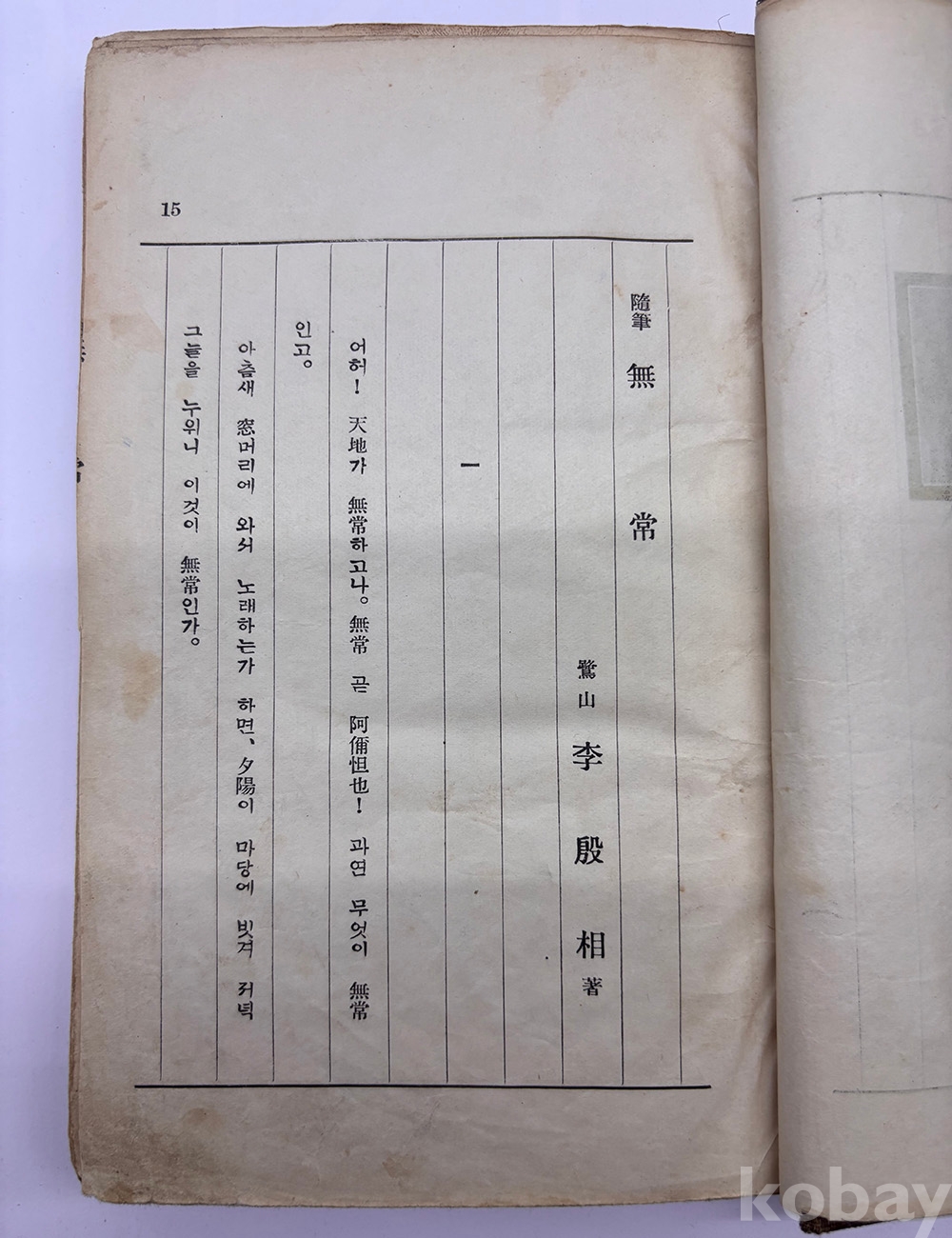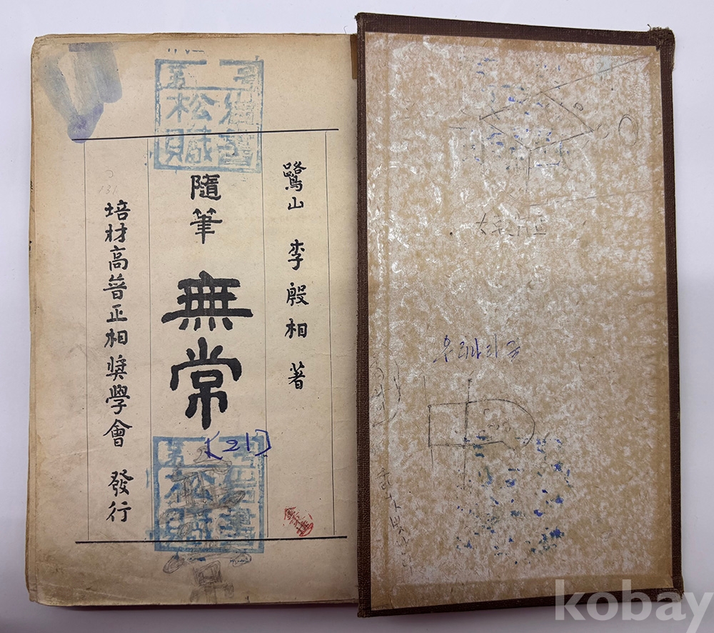 물 품 명 | <좋-았書! 1탄> [4] 1930년대 배재고보 정상장학회 발행 이은상의 [무상(無常)] 1책 | |||||